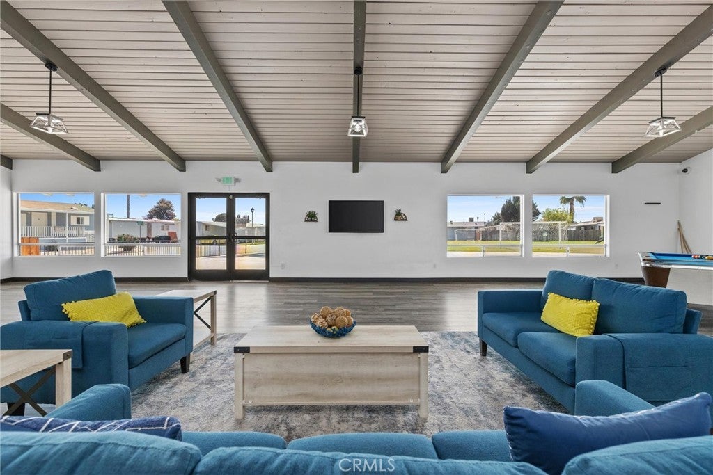 Welcome to this beautifully updated 2-bedroom, 1-bathroom manufactured home nestled on a prime corner lot in the tranquil Riverdale Village community. Step inside to discover a bright and modern interior featuring fresh paint, new carpet, wood-style flooring, and an efficient HVAC system. The kitchen shines with sleek countertops, stainless steel appliances, and contemporary cabinetry, while the bathroom boasts a stunning tiled shower for a touch of luxury. A private side patio offers the perfect space to relax or entertain with outdoor furniture. Beyond the home, enjoy a vibrant lifestyle with community amenities that include a sparkling pool, fitness center, game room, soccer and basketball courts, and a clubhouse with a full kitchen and recreation space. A playground and dog station complete this inviting setting. This turnkey home blends stylish living with a strong sense of communityyour serene retreat awaits.