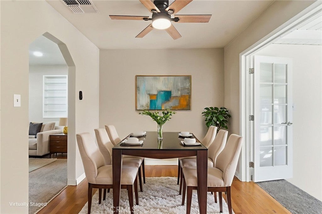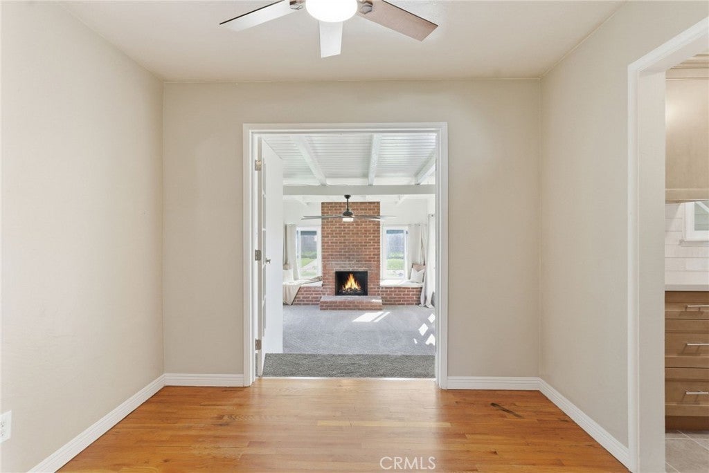 Welcome to this cozy, modern 3-bedroom, 1-bath home featuring fresh updates and abundant natural light throughout. Inside, you'll find brand-new carpet, new ceiling fans, and fresh interior and exterior paint. The beautifully updated kitchen offers warm modern cabinetry, quartz countertops, new tile flooring, and a timeless tile backsplash that adds a warm, elevated feel. A dedicated dining area provides a comfortable space for everyday meals. One of the bedrooms features French doors, a cozy fireplace, and plenty of natural light, creating a unique and inviting space. Additional highlights include a one-car garage and a spacious backyard, perfect for relaxing or entertaining. Freshly updated and move-in ready, this home blends comfort, style, and functionality.
