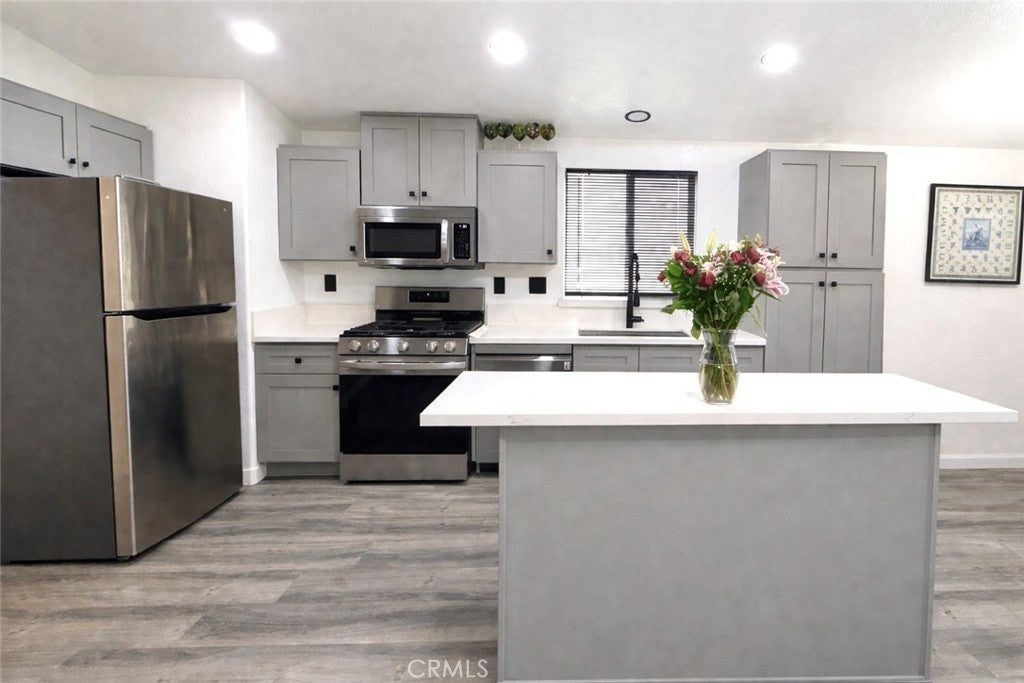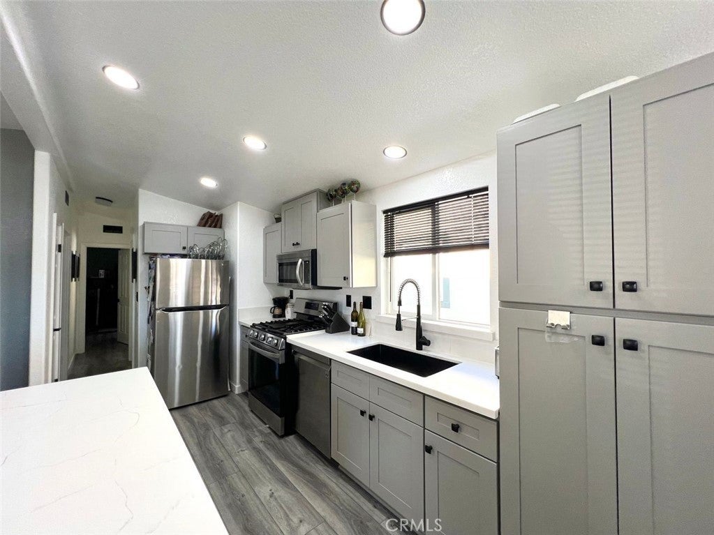 Welcome to this beautifully remodeled home at 449 W Tefft Street, #22, offering a modern, light-filled interior with thoughtful updates throughout. The updated kitchen features quartz countertops, a matching quartz island, stylish gray cabinetry, stainless steel appliances, recessed lighting, and a clean, contemporary design that flows seamlessly into the living space. New laminate flooring runs throughout the home, creating a cohesive and inviting feel. The living area is bright and open with vaulted ceilings, modern lighting, and large windows that bring in natural light. Both bathrooms have been tastefully updated with quartz countertops, modern fixtures, and sleek finishes. The primary bathroom features a new acrylic soaking tub for a spa-like touch. A brand new HVAC system adds comfort and efficiency year-round. Conveniently located near Highway 101 with easy access to gas stations, shopping, and everyday amenities in Nipomo, this move-in ready home also offers access to a community park, adding to its appeal for everyday living.