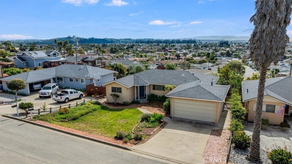 Ocean-view living in desirable Arroyo Grande. This wonderful home sits at the end of a quiet private cul-de-sac, has beautiful curb appeal and looks out at expansive views of the city, ocean, mountains, and sunsets. Conveniently located near shopping, restaurants, school, park and the beach, it provides easy access to the best of the Central Coast while offering a peaceful, private setting. A newly built deck (2025) expands the entertaining space and provides the perfect setting for barbecues, gatherings, or simply relaxing while enjoying the scenery. Inside, the home features 3 bedrooms, 2 baths and a huge 33 ft. by 11 ft. bonus room. Inside, there is lots of natural light, a spacious interior, a cozy living room with a fireplace and the bonus room that offers a lot of flexibility and room for guests. Recent updates include a new roof (2019) and a new refrigerator (2025). While some areas may benefit from updating, the home is attractively priced to allow buyers to personalize it and unlock even more value. Why rent when you can own? With this home's views, privacy, and potential, this Arroyo Grande gem is ready for you to enjoy.