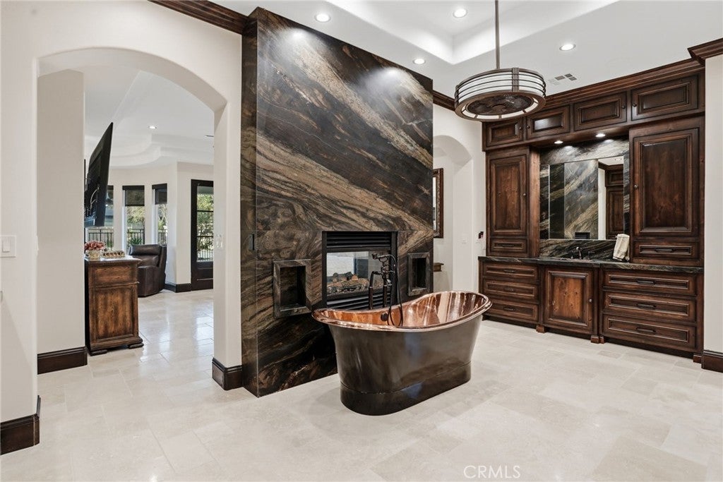 One of Bakersfield's most prestigious estates, offering 6,600+ sq. ft. of luxury living with 8 bedrooms, 6 baths, and a private guest home. This exceptional property features a sparkling pool, paid solar, and over $500,000 in recent upgrades. Enter through dramatic double doors into soaring tray ceilings, custom chandeliers, new flooring and paint, and elegant tumbled travertine. The chef's kitchen includes a Wolf cooktop, expansive walk-in pantry with wine fridge, SubZero built in fridge, and standalone freezer. Wi-Fi extenders provide seamless connectivity throughout. The primary suite is a true retreat with a two-way fireplace, copper freestanding soaking tub, and multi-jet spa shower. Outdoors, enjoy a built-in BBQ and resort-style setting. With 10 garage spaces including an RV garage, new garage doors, large RV parking, privacy gate, and 8-foot solid core doors throughout, this is a rare Bakersfield masterpiece.