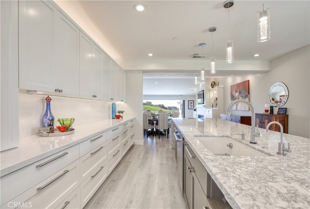 Absolutely stunning, this exceptional home delivers a true “wow factor” from the moment you enter. A rare find on the Central Coast, this single-level residence offers approximately 4,278 sq ft of beautifully renovated living space on almost an 1-acre, perfectly positioned to capture breathtaking, panoramic ocean views. Thoughtfully redesigned with a refined vision and high-end finishes throughout, the home showcases sweeping ocean views from most interior spaces, as well as from the expansive back yard. Designed with both style and function in mind, the entertainer’s kitchen is a showpiece featuring an oversized island (approx. 4' x 13') with a striking granite countertop, absolutely stunning designer backsplash and premium appliances including Thermador gas range/oven, dishwasher, and drawer-style microwave. The island space is designed with a waterfall edge and dual side bar seating for at least 6. Included in the design is a dedicated wine/beverage bar with abundant storage, a butler’s pantry, laundry room designed to accommodate an additional refrigerator & separate freezer. A half bath and an inside storage room is also on this wing. The open-concept living area is light and spacious, enhanced by custom built-ins, a new gas fireplace and a dramatic 6-panel retractable glass door system that seamlessly connects indoor living to the outdoor deck. A bonus media/living room was added for a more private quiet setting just off the main living - all with a view. The primary suite is a private sanctuary accessed through double doors with ocean views from bed, a beautifully updated bath with marble tile shower enclosure, more than generous storage, a walk-in closet, plus an additional oversized second closet off the bedroom area. On the opposite wing of the home are 2 spacious guest ensuite bedrooms, one with ocean views, along with a private home office. The attached oversized 3-car garage is equally impressive, added recently featuring two modern opaque glass-paneled garage doors equipped with ultra-quiet openers and two electric vehicle charging stations. Designed to accommodate additional household storage needs. Last but not least, step out onto the back deck and take in panoramic ocean views. Choose to relax from either the covered patio with floor to ceiling electric retractable screens & heaters for year round use, the additional deck area, the built in fire pit area or the very generous back yard area. Views galore! This is a must see!