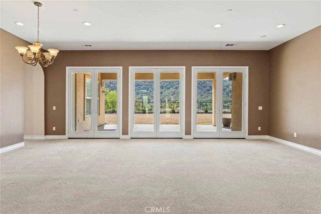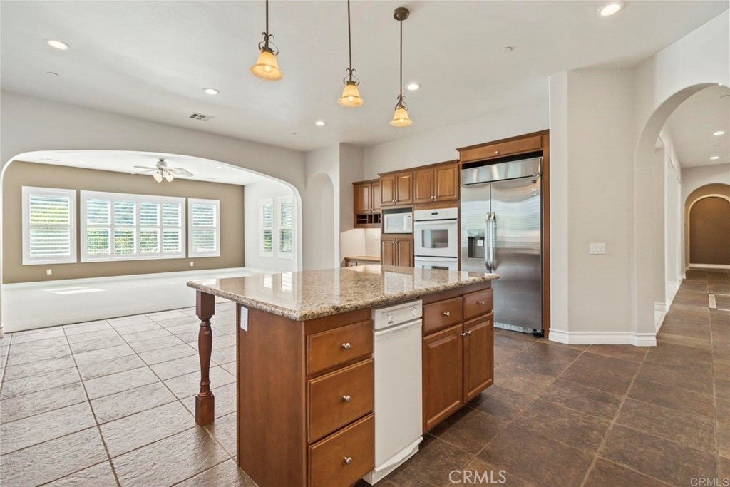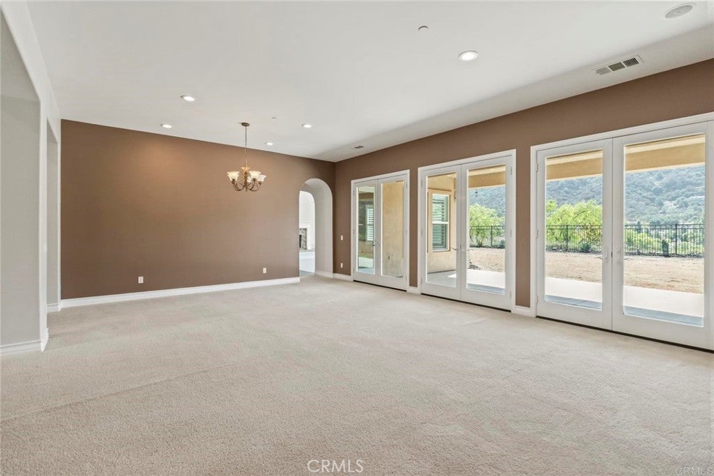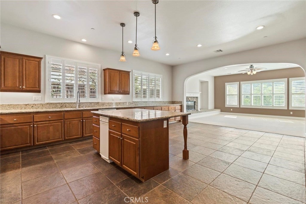 Located within the gated Woods Valley community, 14257 Coeur D’Alene Court offers a well-designed residence set against the rolling hills and fairways of the Native Oaks Golf Club. Positioned on an approximately 0.42-acre lot on a quiet cul-de-sac, this single-level home captures wide-open hillside views and a strong sense of privacy. The interior spans approximately 3,546 sq. ft. and features 4 bedrooms plus a study, 3.5 bathrooms, and a bonus room, creating a flexible layout suited for both daily living and entertaining. A tiled entry opens to expansive living areas where multiple French doors bring in natural light and connect the indoors with the surrounding landscape. The kitchen offers granite countertops, generous cabinetry, a center island with seating, and a walk-in pantry. It opens directly to the breakfast nook and family room, where a gas fireplace anchors the space and creates an easy flow for gatherings or relaxed evenings at home. The primary suite provides a comfortable retreat with peaceful views, while secondary bedrooms are well-proportioned and thoughtfully placed for privacy. The additional study allows for adaptable use, whether for a home office, fitness space, or guest accommodations. Outside, the backyard presents a spacious and open setting with room to add a pool and customize, framed by hillside scenery. Whether entertaining, gardening, or enjoying quiet mornings outdoors, the property offers a setting that complements the surrounding natural environment. Set within one of Valley Center’s most established golf course communities, this home combines scenic surroundings, a functional floor plan, and the benefits of a gated neighborhood, all within convenient reach of local shopping, dining, and everyday amenities. Paid/owned solar. Fully-fenced.