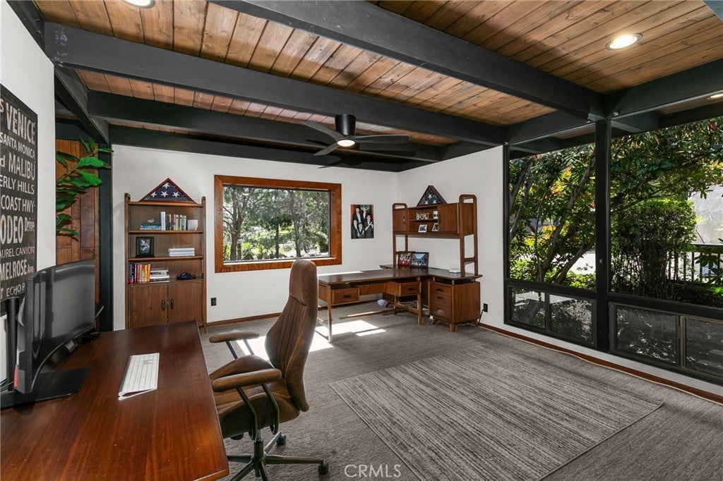 Beamed Ceilings, Breakfast Bar, Built-in Features, Balcony, Breakfast Area, Ceiling Fan(s), Separate/Formal Dining Room, Granite Counters, High Ceilings, Open Floorplan, Pantry, Recessed Lighting, Storage, Wired for Data, Wood Product Walls, Wired for Sound, All Bedrooms Down, Primary Suite, Walk-In Closet(s), Workshop