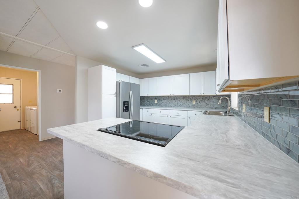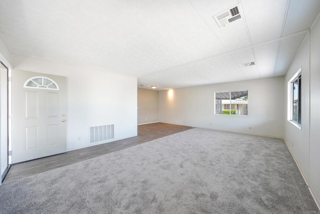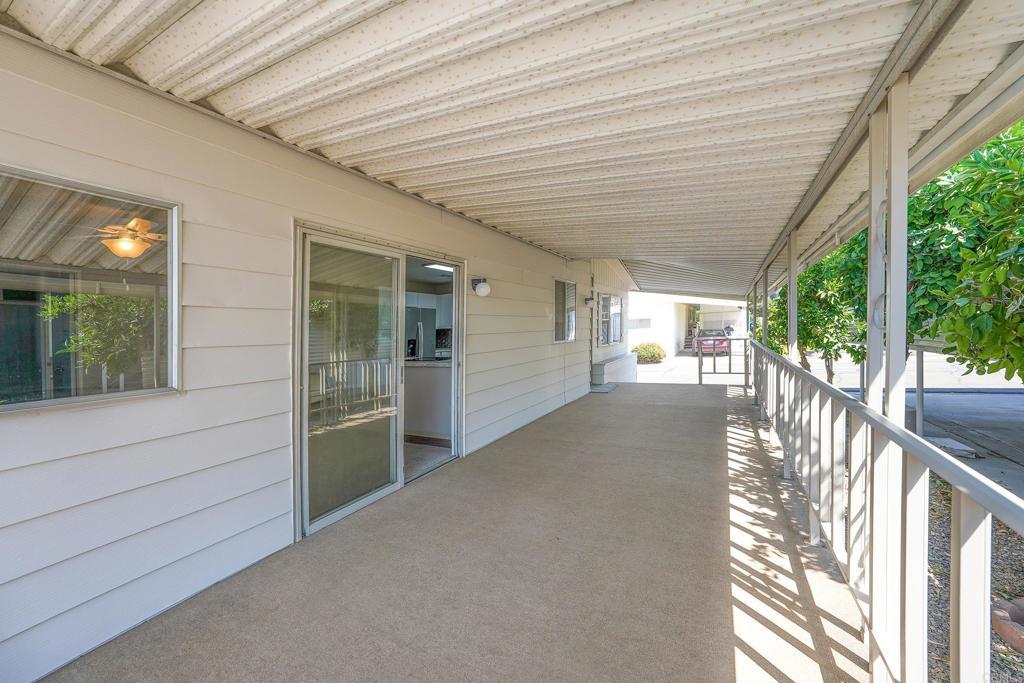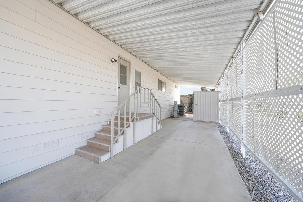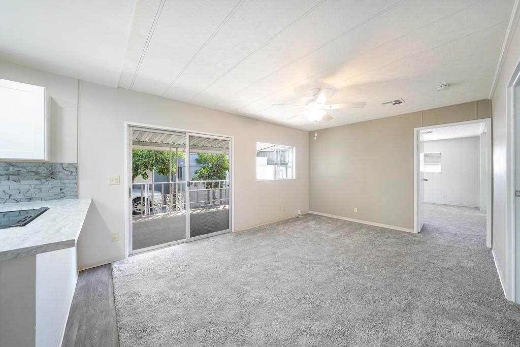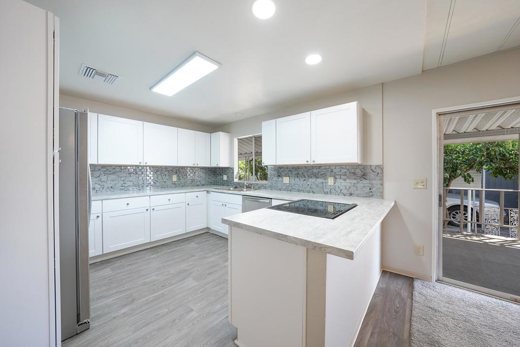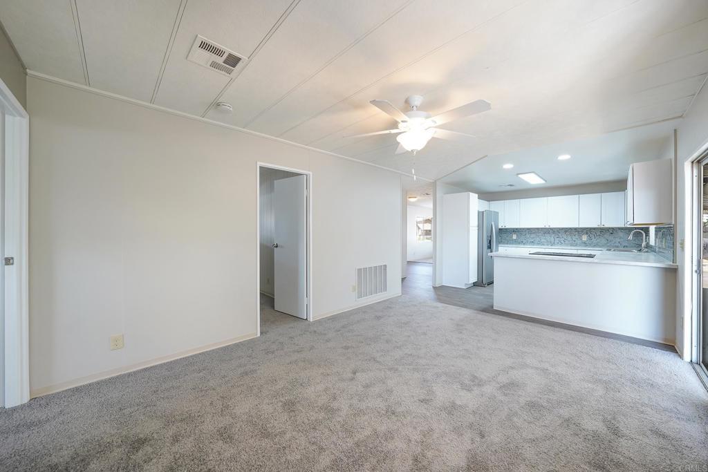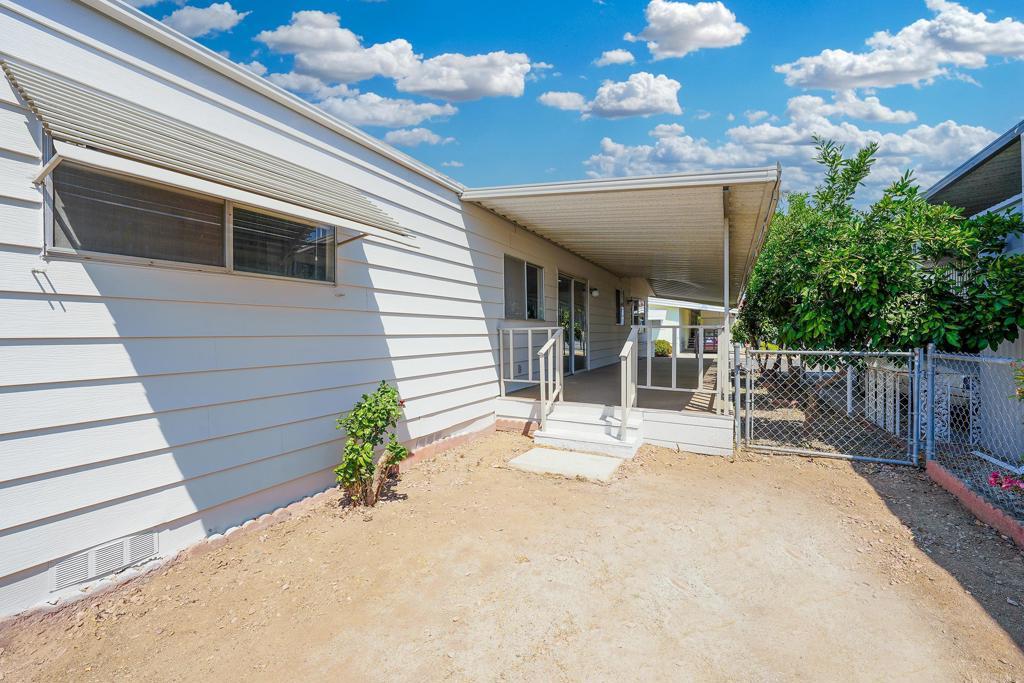 Welcome to this beautifully remodeled manufactured home in the 55+ park of Ramona Terrace Estates! The home remodel includes: New kitchen cabinets, new counters, backsplash, SS appliances, carpeting, paint, Primary bathroom, AC unit and more! This open home is light, bright and spacious! You are located on a corner lot and the home offers covered carport parking and a small fenced area on the side. Turn-key and move in ready!!!