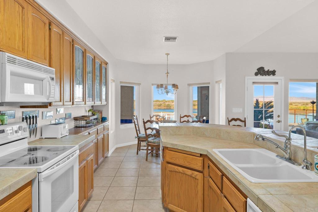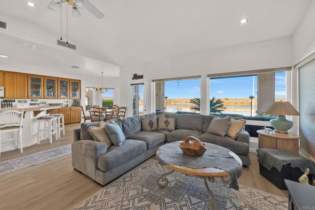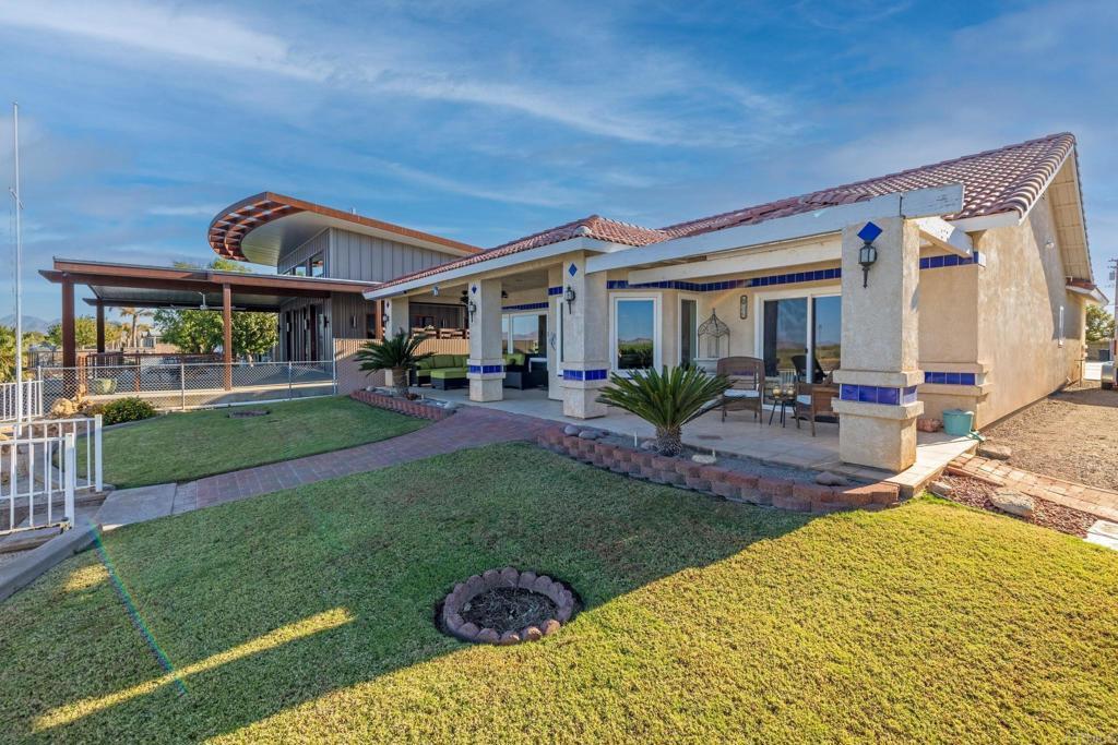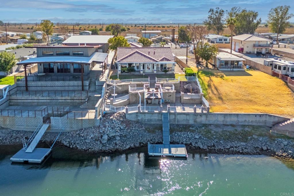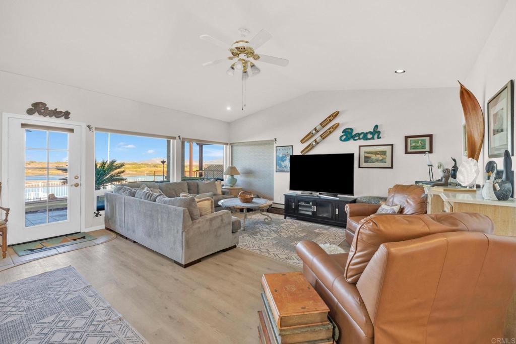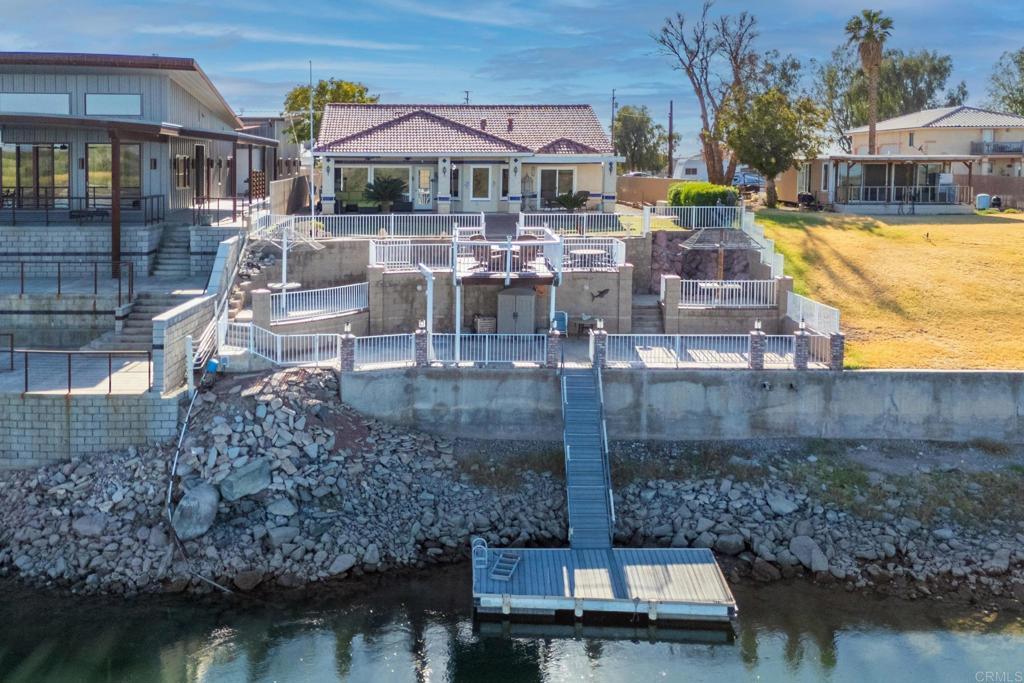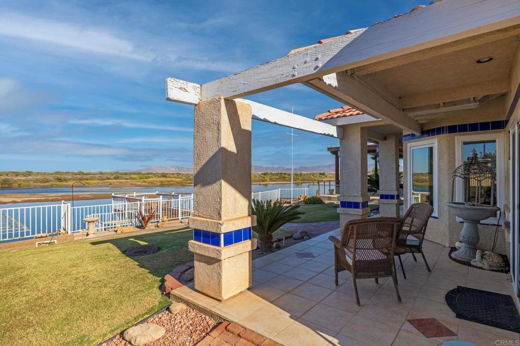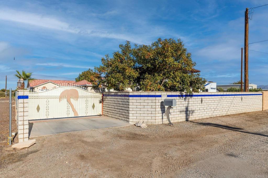 Welcome to your private riverfront oasis — where stunning panoramic views, thoughtful design, and ultimate comfort come together in perfect harmony. Tucked behind a secure gated entry, this beautifully crafted home is positioned to capture breathtaking 180° views of the Colorado River and distant mountains. A long, private concrete drive leads to an oversized detached garage, ideal for storing boats, jet skis, desert toys — or converting into a workshop or casita. The fully fenced property features professionally finished landscaping, irrigation, and hardscaping, offering a clean, low-maintenance exterior that’s ready to enjoy. Step inside to soaring vaulted ceilings and an open-concept living space bathed in natural light, thanks to large newer double-pane vinyl windows. The kitchen is both functional and welcoming, with ample cabinetry, expansive countertops, and a bar-height seating area perfect for entertaining. Wake up to water views in the spacious primary suite, which features a sliding glass door with direct access to the backyard and patio. Whether you’re hosting guests or enjoying a quiet morning coffee, the covered patio and terraced backyard offer multiple areas to unwind — including a cozy elevated deck with propane fire pit right near the water’s edge. Head down to the lower terrace, complete with a private outdoor shower, shaded seating area, and direct access to your private dock — perfect for launching into river adventures. Additional highlights include: • Two RV parking spaces with full hookups • Completely move-in ready and sold fully furnished • Ideal for full-time living, a weekend retreat, or short-term rental potential This is more than a home — it’s a lifestyle. Live your best life on the river, where every day feels like a getaway.
