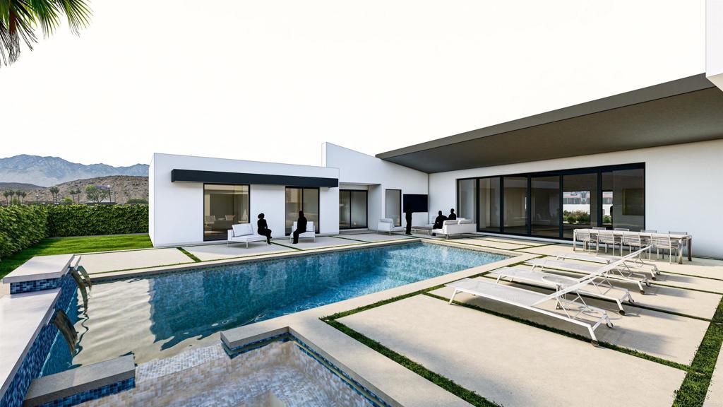 Welcome to this amazing 4,500-square-foot contemporary home in the heart of Palm Desert. This wonderfully appointed property has been completely rebuilt as of 2025 with high-end fixtures and furnishings. It features six spacious bedrooms, six elegant bathrooms, and a corner lot with separate entries. Enjoy a huge 24-foot opening to the rear pool area, perfect for indoor-outdoor living. The kitchen boasts bi-fold window sit down countertop that allows for great entertaining. The very large 2 car garage is deep enough to allow for an extra car and with the separate golf cart garage this home is ready to allow for laid back travel. This marvel is close enough to walk to shopping and great restaurants and far enough to be private. The back corner of this property is adjacent to the prestigious Vintage Club. Most traffic around this corner lot is by bicycles and locals walking daily. This home is slated for completion in the summer of 2025 and is awaiting you. It's a must see to appreciate allow the custom-high end amenities. Call today!