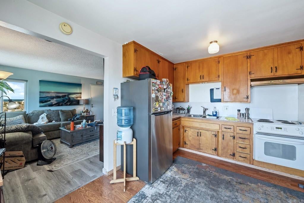 The Property is located in a supurb ocean view location that is highly desireable for income properties. The property is being sold As-Is. The owner had a true interest and dedication to using Solar power. Over time he had installed a 5 panel Solar System with battery backup stored in the garage of Unit 1. The configuration of the project is two levels with direct access at the front of each unit. Three of the units had some remodeling over time The most southern first level unit (4) had a bedroom added in 1984 that is now a large Dining Room. The adjoining unit (3) had a bathroom added and direct access to the garage. The second level Southern unit (2) had a 8’x10’ deck added with great coastal views. Attached in Listing information are footprints for each unit as well as illustration of how the units connect. Available. if requested for review at the site, are building plans for the original 3 units dated 1960. It is likely that this property will be able to add an unknown number of ADU’s, The lot is flat until the end of the fenced yard for the most Southern ground level unit 4. From that point the property takes a very steep drop to Coronado Ave and there is natural spring. Prior to listing we have undertaken a full Property Inspection, a camera visual inspection of the sewer line and a termite inspection. The video of the camera inspection is too large to include. Please ask to have copy of video.All of these reports are available. We do this to provide potential buyers with important information and speed up due diligence. However, potential purchasers are encouraged to do their own due-diligence as desired. Three of these units have commanding views of the Coastline and the Ocean which significantly enhances the value of this property