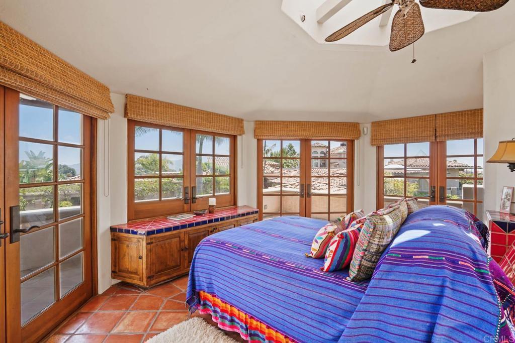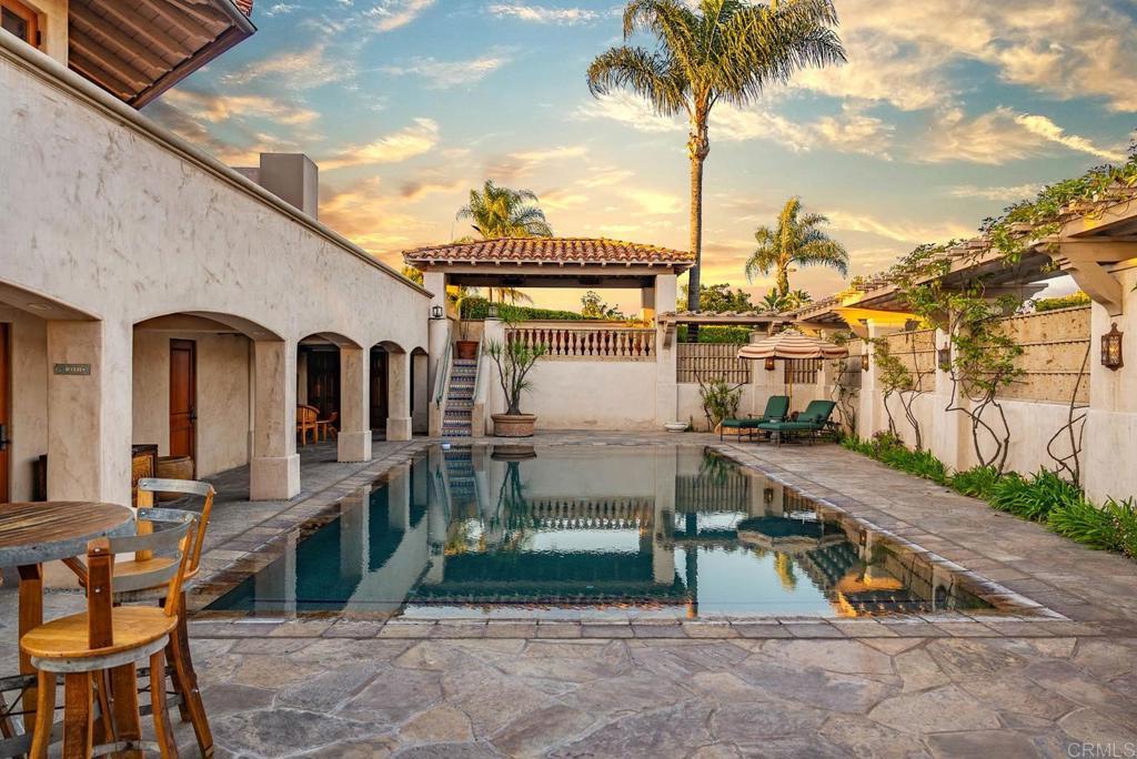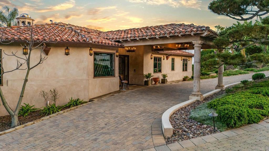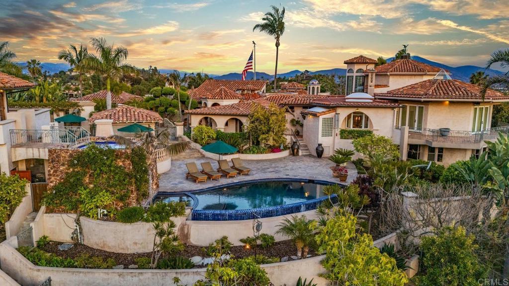 Discover an unparalleled opportunity in Mt. Helix with this expansive 2.41-acre estate, comprising a 5,872-sq-ft Santa Barbara–inspired main residence, a 2,428-sq-ft meticulously remodeled casita and a separate 0.77-acre ready-to-build vacant lot. The main residence blends architectural elegance with resort-style amenities, featuring interconnected octagonal structures and a dramatic tower room offering 360° panoramic views. Formal and casual living areas complement a chef’s kitchen and a primary suite that opens to a wraparound terrace. An executive office adds functionality, while the lower level includes versatile bedrooms, auxiliary flex rooms, and a gym/storage space. Outdoors, botanical gardens with over 100 rose varieties, four tranquil fountains, and diverse specimen trees create a serene setting. Multiple pools and spas, including an elevated spa with sweeping views to the east, south, and west—encompassing Downtown San Diego and Point Loma—provide relaxation, while expansive terraces and a fully equipped outdoor kitchen enhance alfresco dining experiences. Centrally located between the pools, a two-story pool house features multiple bathrooms, a rejuvenating sauna, and the “Las Brisas” guest retreat with a detached gym/yoga studio and direct spa access. The casita, extensively renovated in 2018, offers a chef’s kitchen, hardwood floors, exposed wood beam ceilings, and a separate downstairs studio with a full bath and kitchenette. Completing this exceptional estate is a generous buildable lot equipped with a private water well currently used for irrigation, offering sustainable landscaping and potential for future development or added privacy. This estate masterfully combines architectural elegance, luxurious amenities, and breathtaking views, offering a one-of-a-kind living experience in the prestigious Mt. Helix community.