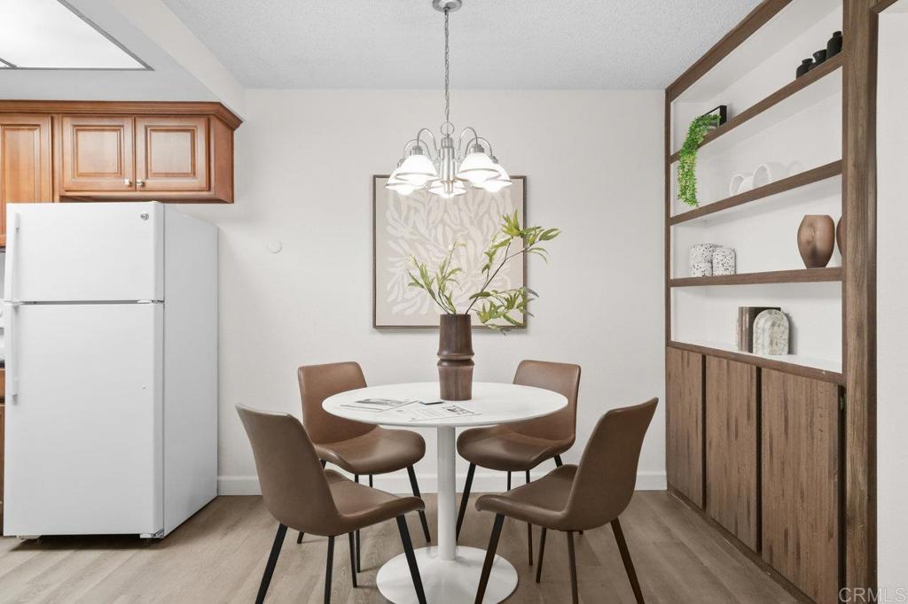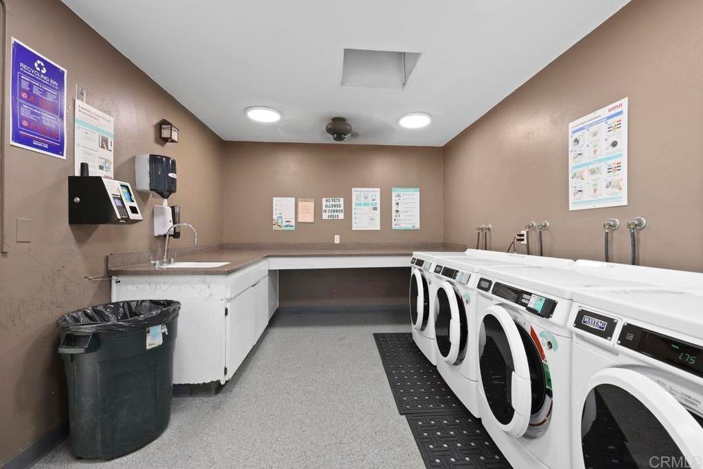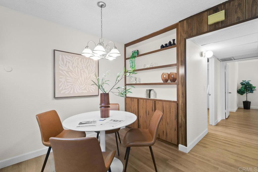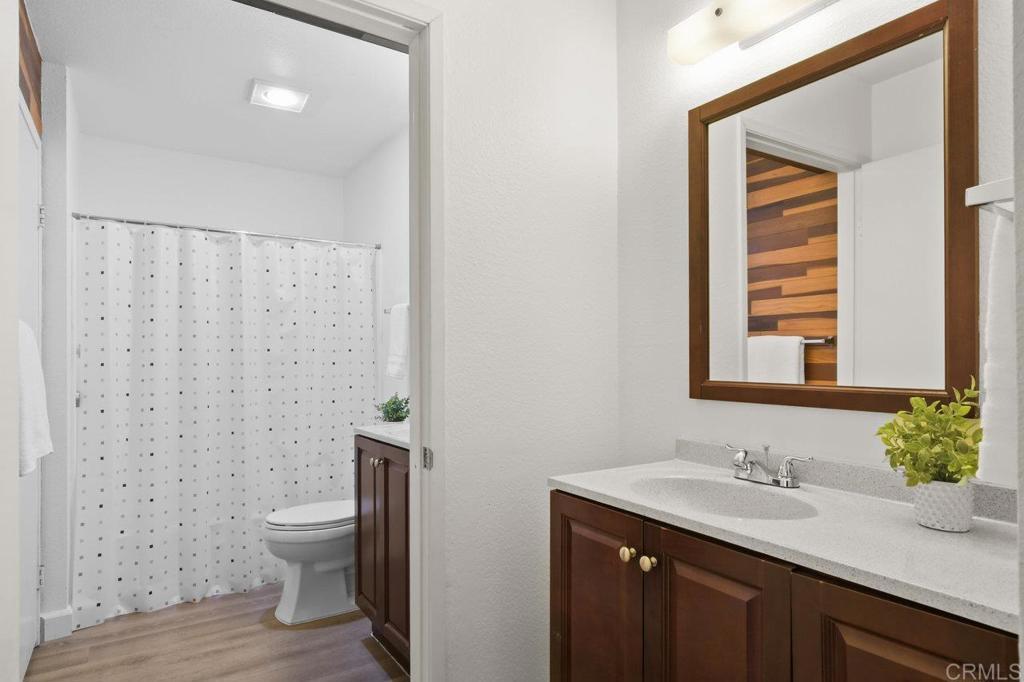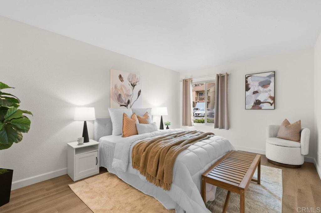 Location, location, location! Welcome to this charming, recently remodeled two bedroom VA approved condominium in the heart of Mission Valley. Thoughtfully upgraded throughout, this home features a modernized kitchen and bathroom, new window coverings, and stylish luxury vinyl plank flooring. The primary suite offers a spacious dressing area with it's own sink, direct access to the full bathroom, a linen closet, and a roomy walk-in closet. Step outside to the sun filled private patio complete with lush artificial turf, a secure private storage closet, and a brand new retractable sunshade. With the shade open, enjoy views of the surrounding neighborhood and car park--an ideal spot for a potted plant garden or relaxing outdoors. Located in the highly desirable Rancho Mission Villas, residents enjoy beautifully manicured grounds, tranquil water fountains, ample guest parking, two pool areas with Jacuzzis, picnic areas with furnishings, and BBQ's, a gym, tennis courts, secured restrooms, and a stunning clubhouse (see CC&Rs for details). This home is within walking distance of shopping, dining, the trolley station, a popular gym, and the exciting Snapdragon Stadium. Imagine hopping on the trolley just steps from your home to East County, Downtown, or North County. Prefer to drive? You'll appreciate the quick and easy access to Highways 8 and 15. Professional grade laundry rooms are conveniently located throughout the complex. Enjoy living in the vibrant Mission Valley community--homeownership at an affordable price with outstanding amenities. This just in: New building roofs in progress! Welcome home to Rancho Mission Villas.