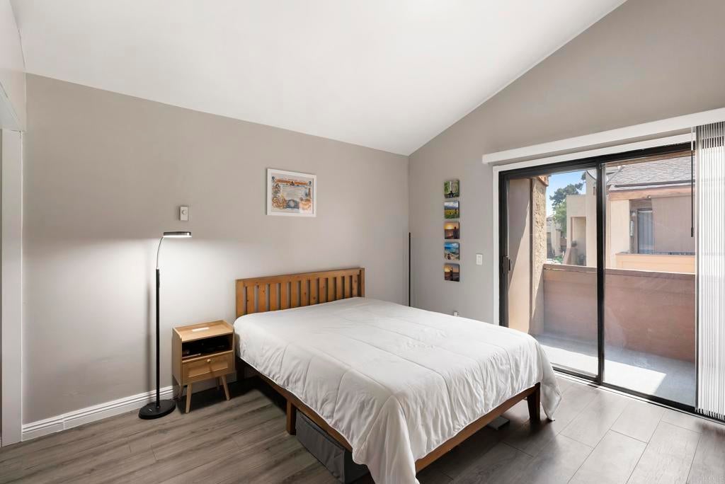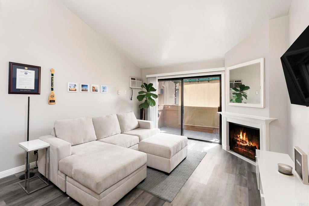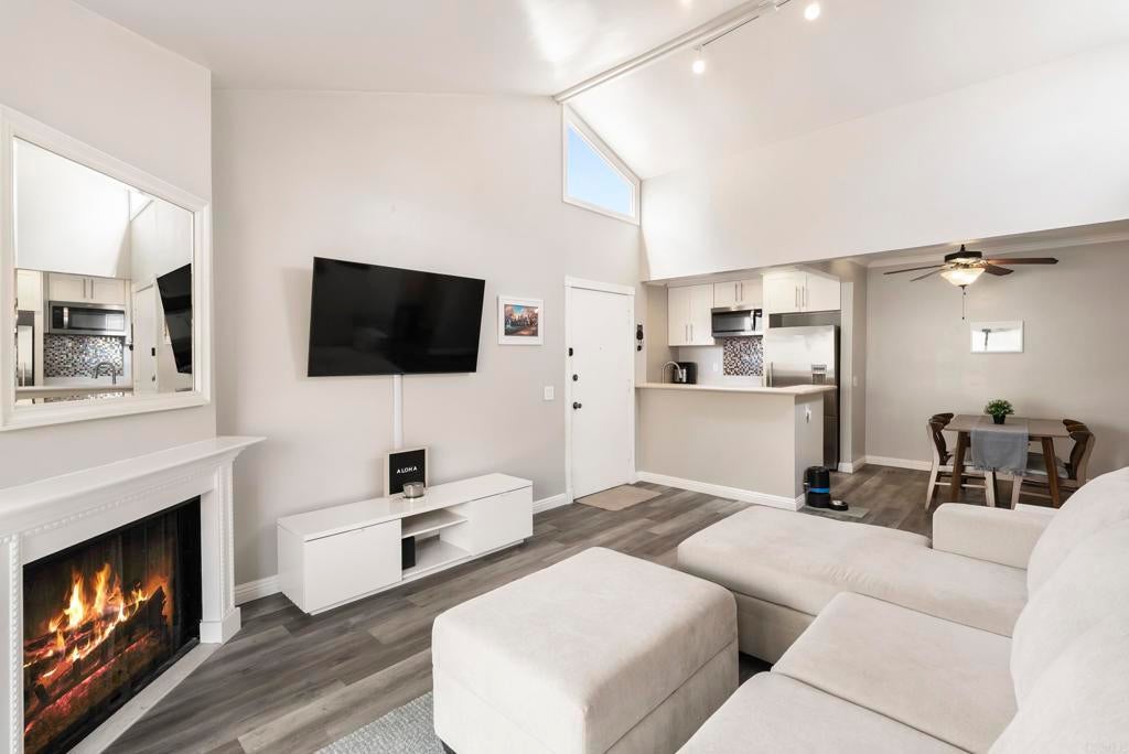 VA approved Bonita top floor condo that features updated flooring throughout, wood burning fireplace with vaulted ceiling in the living room, two balconies, extra storage, stainless steel appliances. Community Pool, Spa and Laundry Room. 2 parking spots available and garage option