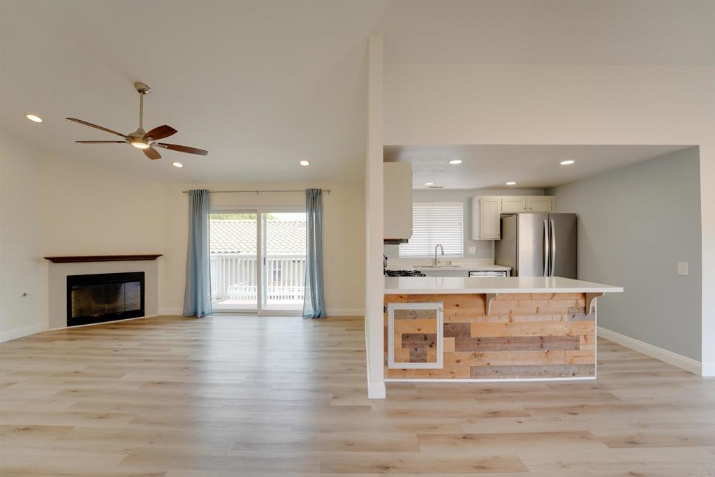 Seller will consider a 2-1 buydown for buyer! Welcome to this stunning move-in ready top-floor unit situated in a peaceful and meticulously maintained complex. This light and airy home is fully equipped and checks all the boxes for the modern homeowner. Step inside to discover brand new paint and newer luxury vinyl flooring throughout. Soaring cathedral ceilings flood the living space with natural light, creating a warm and open atmosphere that feels like home the moment you arrive. The kitchen features quartz countertops, stainless appliances and custom wood paneling accents on the peninsula, adding a stylish designer touch. Enjoy the comfort of central A/C, the convenience of in-unit laundry, and the privacy of no one living above you. The oversized 2-car garage is located just steps from your front door and provides ample storage and easy access. Conveniently located near Sprouts Market and the vibrant Vista Village with its charming cafes, restaurants, and weekly farmers market. Only 10–15 minutes to Carlsbad, Oceanside, and North County beaches, and with easy access to I-78, I-5, and I-15, your commute and weekend getaways are a breeze.Don’t miss this rare opportunity to own a beautifully upgraded home in a quiet, established neighborhood. VA and FHA approved.