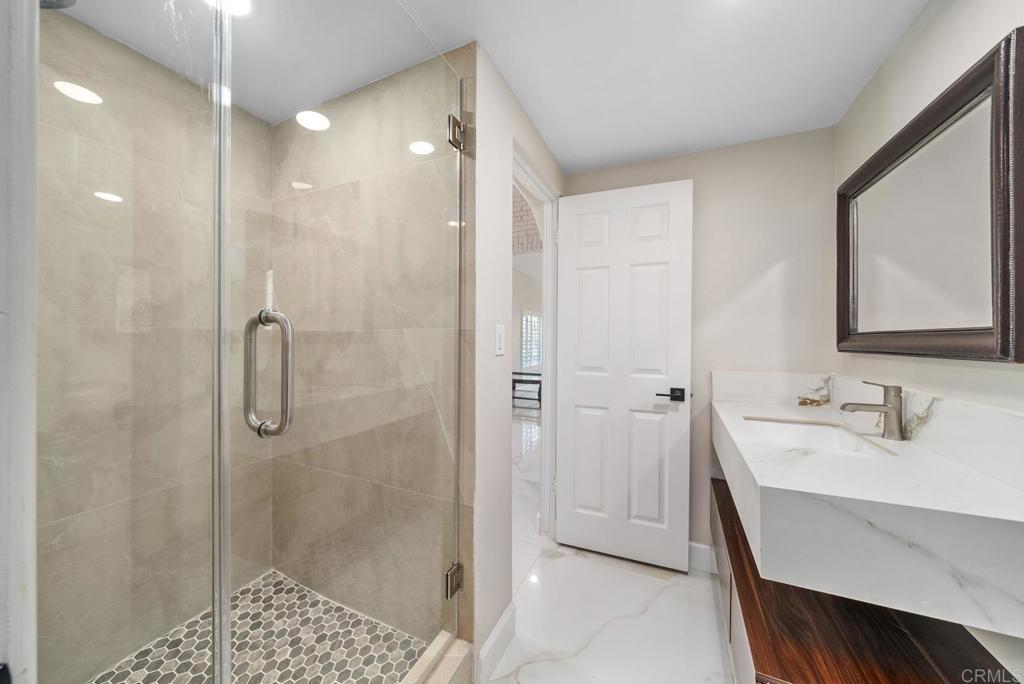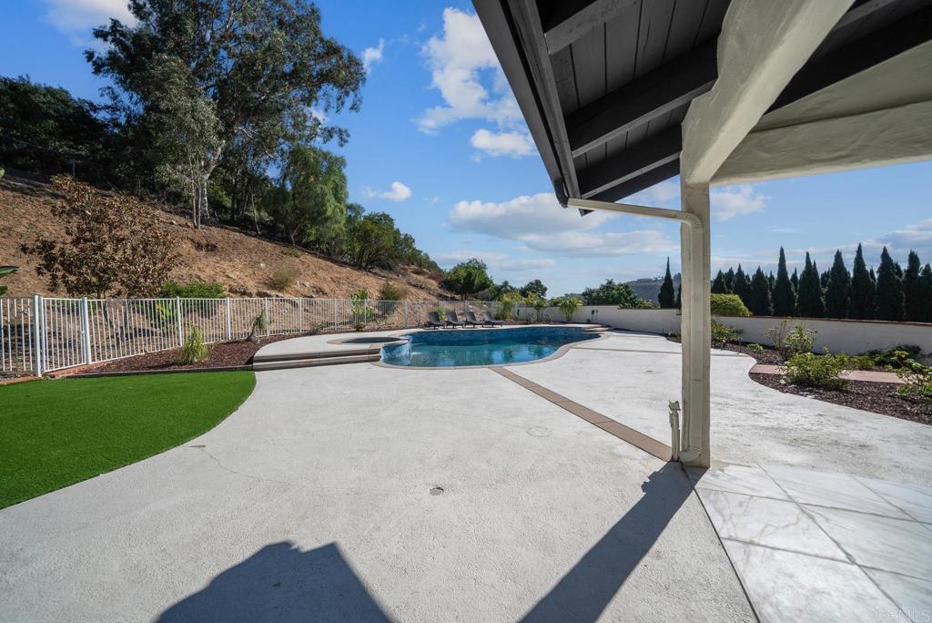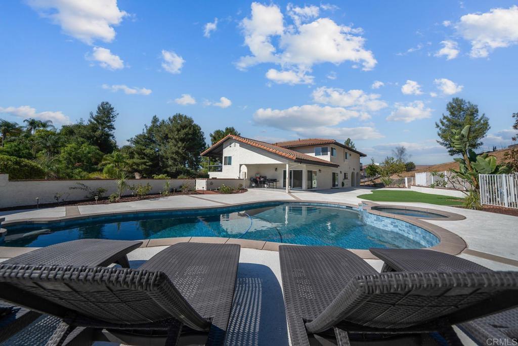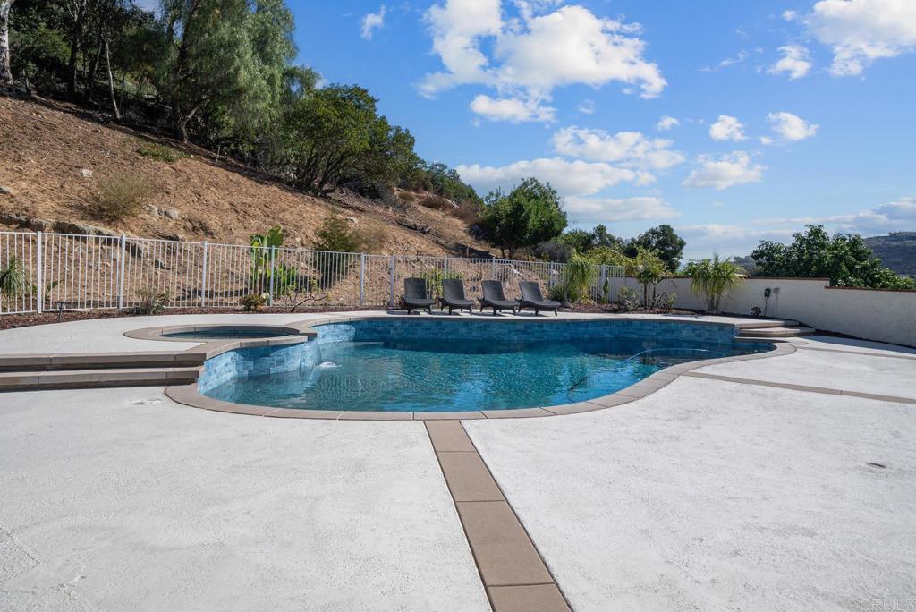 Custom Built Rancho San Diego hilltop estate with Spanish style design and modern interior upgrades! This home offers sweeping mountain views and an occasional peek view of Coronado Island from multiple balconies. Double door Entrance greets you to vaulted ceilings and a recently fully remodeled open floor-plan! The Gourmet kitchen features custom white cabinetry, quartz counter-tops, an extra-large subzero fridge, double ovens, and a large island that opens up to your nook eating area as well as the family room area! The family room offers a modern style fireplace and three sliding glass doors that take you out to the backyard area! The Backyard offers custom pool, jacuzzi, large sunbathing deck w views, covered patio area as well as plenty of room to entertain your family & guests! This expansive lot has room to build an ADU or add motor home parking if desired. Large Master-Suite offers gorgeous views, fireplace, walk-in closet completely built out & a gorgeous master bath w separate bathtub and stand-up shower! Fruit trees, including Mulberry, avocado, orange, tangelo, Peach, guava, lemon, apricot, Cheremoya and more! A large driveway suitable for six cars, paired with an oversized garage ensure you will have plenty of parking for any guests. Come live the good life in this quiet neighborhood of East County!