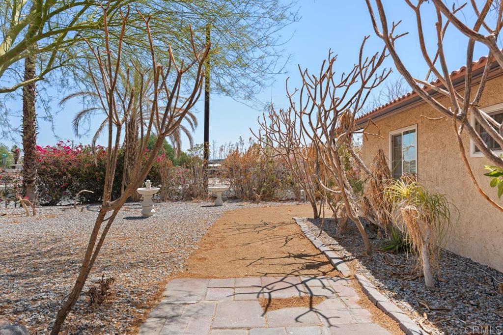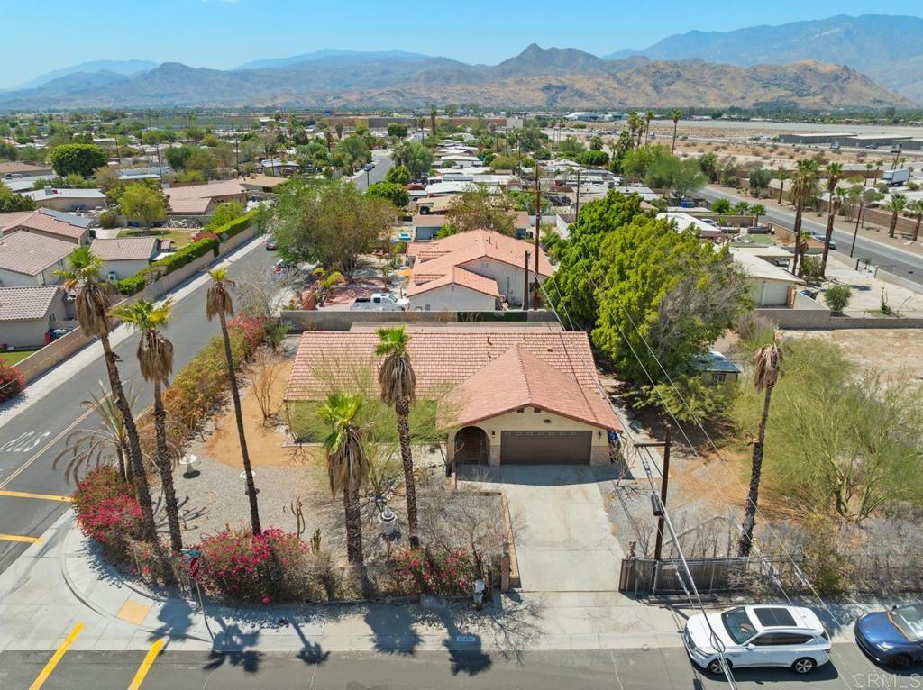 Welcome to this move in ready property on a HUGE almost half-acre lot (Great opportunity to split the lot and build a new home and ADU with amazing views of the mountains!)in the Dream Homes neighborhood of Cathedral City! This beautifully remodeled 3-bedroom, 2-bathroom home boasts modern upgrades throughout, including walk-in showers, sinks, kitchen appliances, and an updated A/C and heating system. The desert exterior landscaping enhances the home's curb appeal and complements the scenic surroundings. Step inside to discover beautiful laminate flooring and an open concept living room and kitchen, featuring granite countertops and stainless steel appliances. The space is filled with natural sunlight, accentuated by sliding doors that lead to the backyard. Retreat to the primary bedroom, featuring an upgraded ensuite bathroom and a spacious walk-in closet. Every bedroom is equipped with mounted ceiling fans, providing added comfort during warmer months. Outside, the backyard oasis offers endless possibilities with a covered patio, complete with rolling sunshades—perfect for alfresco dining or relaxing in the shade. Additional features include a home generator for power outages, ample storage sheds for gardening tools, and a closed-off electric gate that ensures perfect privacy. The generous lot provides versatile options: create RV/car parking, establish basketball or tennis courts, or design your dream resort-style backyard. You even have the opportunity to build an oversized ADU on the other side of the lot. For savvy investors, California's SB9 law allows for the lot to be split in two, enabling the construction of an additional home and ADU on the new lot—maximizing the potential for four cash-flowing structures. This property is ideally located just minutes from major retail stores and dining options, including Home Depot, Walmart, Marshalls, Panera Bread, and Raising Cane's. Downtown Palm Springs, renowned for its museums, live events, and high-end restaurants, is only a five-minute drive away. Exciting developments in Cathedral City include the new Esperanza Park which sits on 7.5 acres in the Dream Homes community with facilities for kids and adults. There's playground equipment, a fitness area, soccer fields, additional grass space, a dog park and more. With NO HOA and NO land lease, this competitively priced property offers immense potential for both homeowners and investors alike. Don’t miss the chance to own a slice of paradise in a vibrant and growing community! Investors and anyone with a capital gain? This property is in an Opportunity Zone! Talk to your CPA if you are unaware of the benefits. Great opportunity to split the lot and build a new home and ADU with amazing views of the mountains!