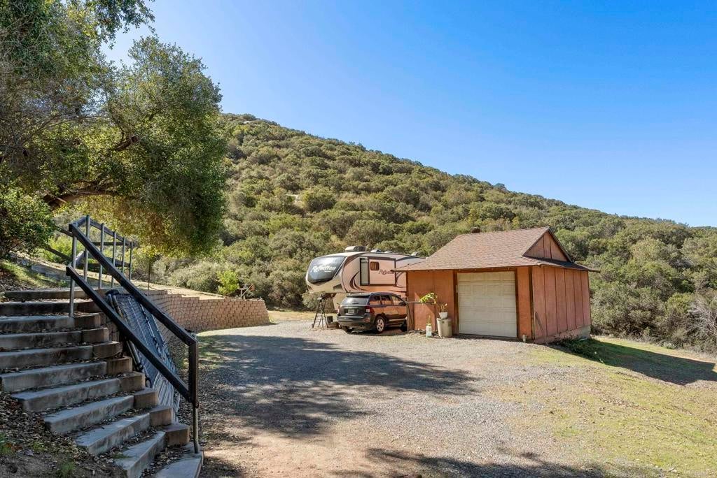 Short Sale Approved! Elevated luxury awaits in this custom 2013 estate, privately set on 7.45 acres with sweeping mountain and valley views. This refined 4 bed, 3 bath, 3,300+ sq ft residence features a grand open-concept design, gourmet chef’s kitchen, elegant wet bar, and a resort-caliber primary suite with private view deck, spa sauna, and elevator access. High-end construction, upgraded systems, owned solar, a private well, and a 10,000-gallon water tank offer both sophistication and sustainability. An oversized 3-car garage with pass-through door and a detached workshop with dual 50-amp RV hookups add exceptional versatility. A secondary graded pad is ideal for an ADU or expanded compound. Just minutes from Sycuan Resort and Alpine, this rare property delivers privacy, dramatic views, and the ultimate luxury lifestyle.