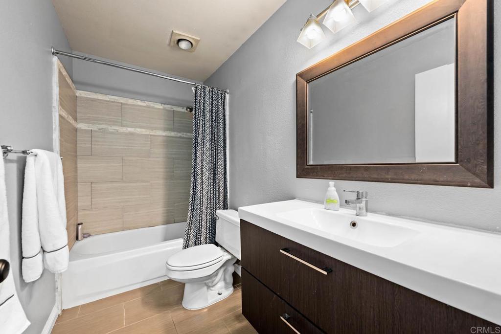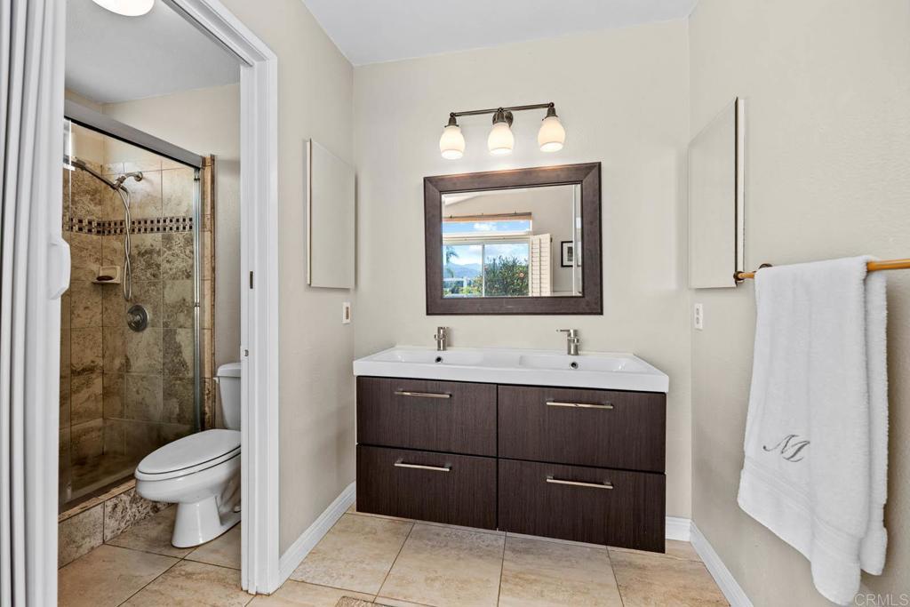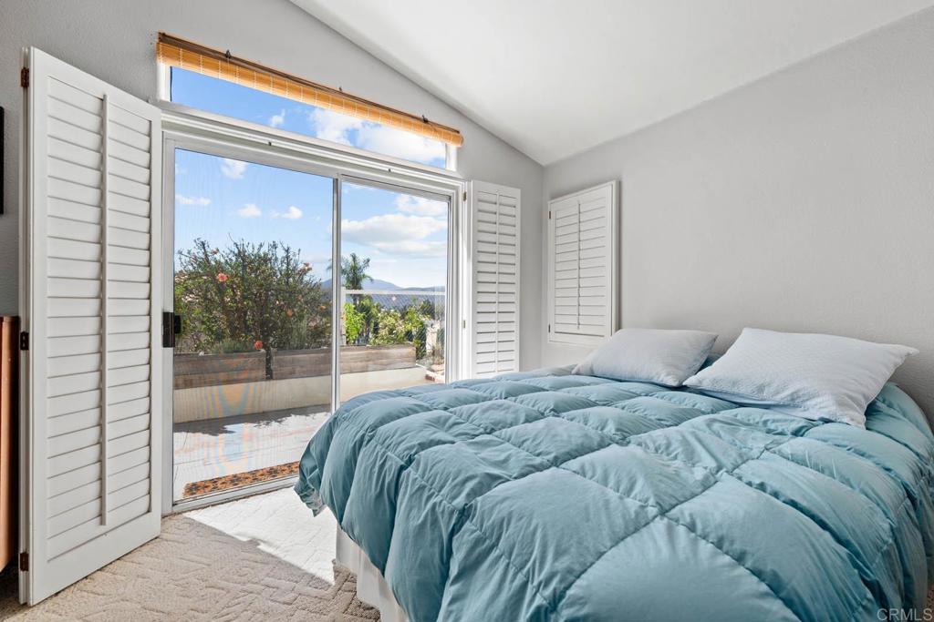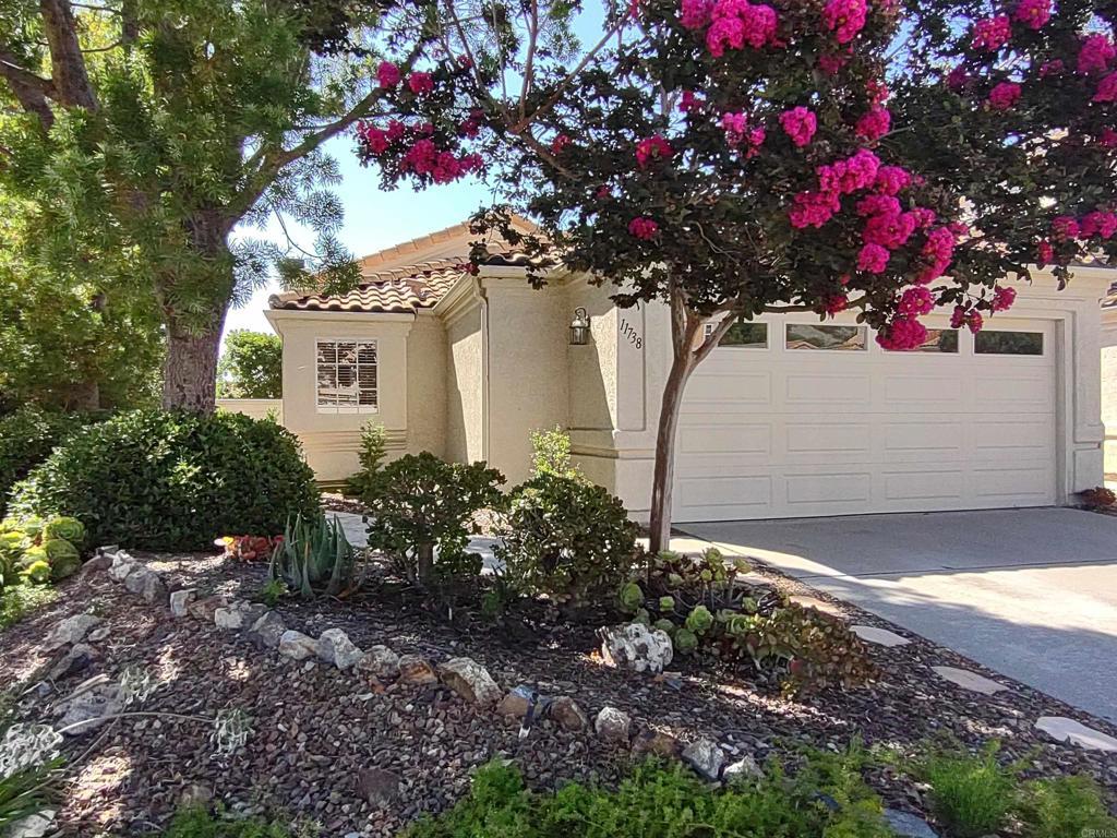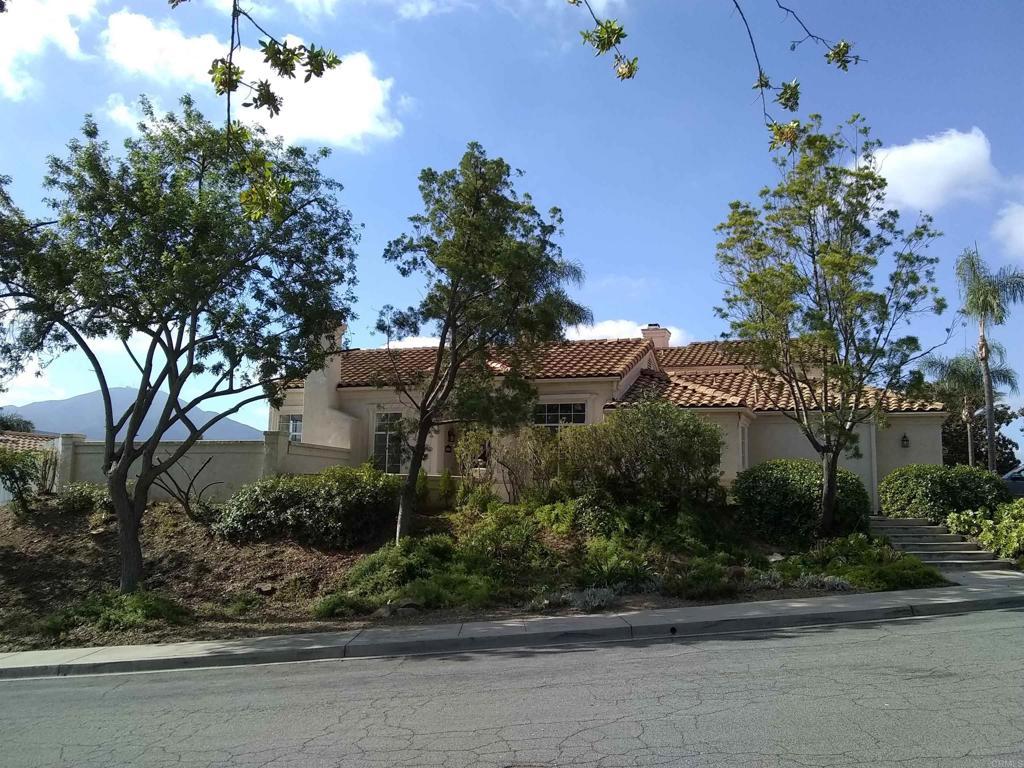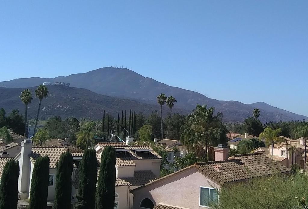 This Rancho San Diego mountain view home sits at the top of Bella Terra on a private wooded corner lot at the end of a quiet cul-de-sac. With sweeping views of Mt. San Miguel, this single-story 3 bedroom, 2 bath home offers both comfort and charm. Inside, cathedral ceilings and dark wood floors create a spacious, elegant feel, while plantation shutters and a cozy fireplace add warmth. The kitchen features white granite countertops along with a newer refrigerator, range, and microwave hood. The primary suite offers mountain views, a cathedral ceiling, double sinks, a large closet, and direct access to the back patio. The outdoor spaces are designed for relaxation and enjoyment with a terrace patio and courtyard surrounded by roses, hibiscus, lemons, and grapes. Redwood garden boxes flourish with vegetables, herbs, and berries, while shady trees and landscaped slopes provide a serene and private setting. The home also includes a two-car garage with a newer electric door, an on-demand water heater, and a washer and dryer. The exterior was painted five years ago with durable water-repellent elastomeric paint to ensure long-lasting beauty. Ideally located close to highly rated schools, shopping, restaurants, parks, Cuyamaca College, and the public library, this home is a perfect blend of peaceful living and everyday convenience.