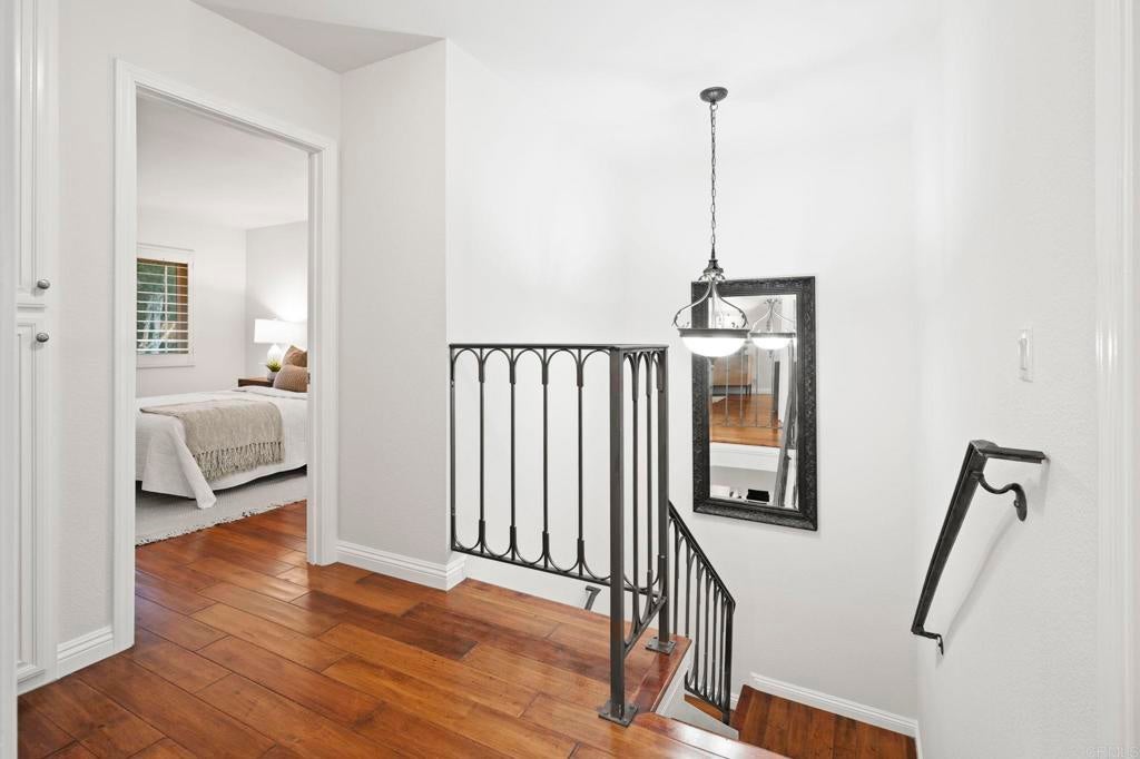 MOVE-IN READY! Welcome to 8037 Caminito Mallorca, a beautiful turnkey townhome nestled in the highly desirable La Jolla Village Southpointe Community. This elegant residence offers 3 bedrooms, 2.5 bathrooms, and 1,467 square feet of thoughtfully updated living space designed for comfortable coastal living. Light, bright and drop dead, gorgeous! Granite kitchen, wood-burning fireplace, plantation shutters, rich wood flooring, newer energy efficient dual pane windows, upgraded baths and a large private patio that opens onto a SPACIOUS GREEN BELT, one of the few units that has no one behind the home! In addition, this townhome is located on a cul-de-sac! Enjoy lovely views from the second level and cool ocean breezes! Primary suite also has vaulted ceilings and a lovely ceiling fan! The beautiful Kitchen has granite countertops, new/newer appliances and recessed lighting. Throughout the upstairs, you will find rich hardwood flooring, newer mirrored closet doors in two of the rooms and a spacious walk-in closet in the third. Walk/bike to nearby large park, upscale markets, restaurants, shops, pharmacies and renowned UCSD! Minutes to Torrey Pines Golf Course and the pristine beaches of La Jolla! Centrally located with easy access to freeways. The attached two-car garage includes a recently installed A/C-ready furnace and convenient in-unit laundry with washer and dryer included. The community offers exceptional resort style living with three wonderful pools, spas and walking paths, all within close walking distance! Come see all this wonderful Townhome and neighborhood has to offer!