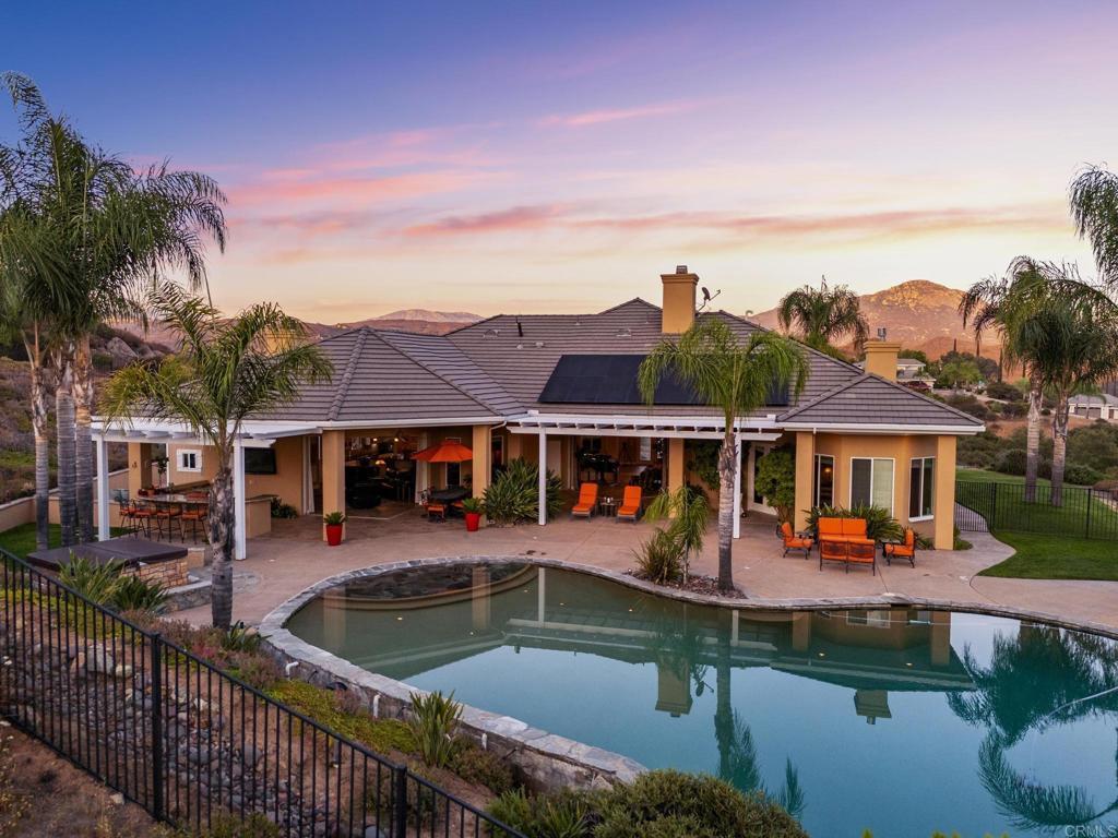 Welcome to 2772 Firebrand Drive also known as “Casa Ensueño.” This DREAM HOME is a stunning single level estate located in the exclusive guard gated community of Rancho Palo Verde Estates. Wonderful split floorplan with a no step entry! Set on over 2 acres, Casa Ensueño is an entertainer’s delight, resort style palm oasis where expansive glass pocket doors frame unobstructed views of your private backyard. Infinity edge pool with cascading waterfalls, walk-in beach entry and lush tropical landscaping with a fully equipped outdoor kitchen are just a few of the luxury surroundings. Tranquil and private, the setting feels like your own exclusive retreat. A Chef’s kitchen features all stainless steel appliances with tons of extensive cabinetry. Don’t miss the dual dishwashers, pot filler, warming drawer and appliance garage. The luxurious primary suite offers French doors to the patio, a dual-sided fireplace, private sitting area, dual walk-in closets, and separate dual bathrooms with a unique master bath water fill. Each guest bedroom includes an en-suite bathroom. The office boasts custom built-in cabinetry, hardwood floors, and desk with sweeping eastern views. Fully owned solar for energy efficiency. Three car garage has a pull-thru option. Boat/RV Storage in the side yard behind beautiful custom iron and wood gates. Meticulously maintained and extensively remodeled, Casa Ensueno showcases tumbled stone tile floors, fresh exterior paint and so much more! Every detail reflects quality and sophistication, making this estate a true Rancho Palo Verde showpiece. Indoor and Outdoor furniture is negotiable!