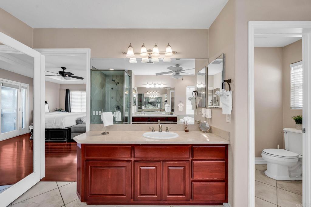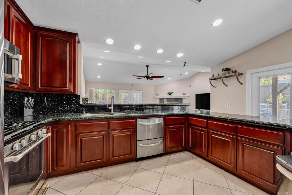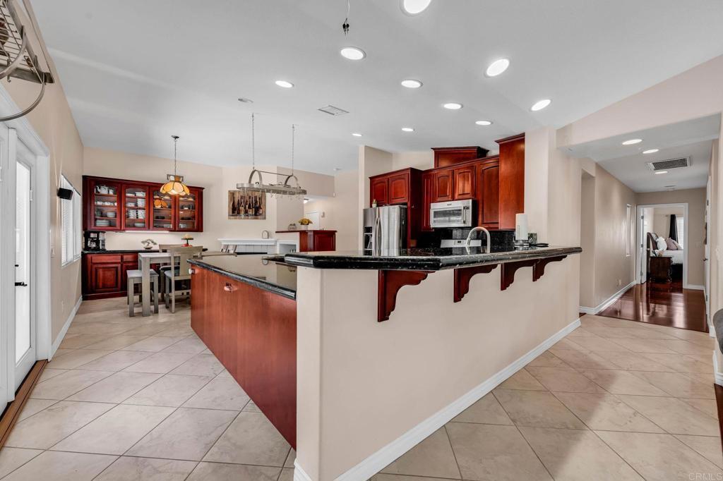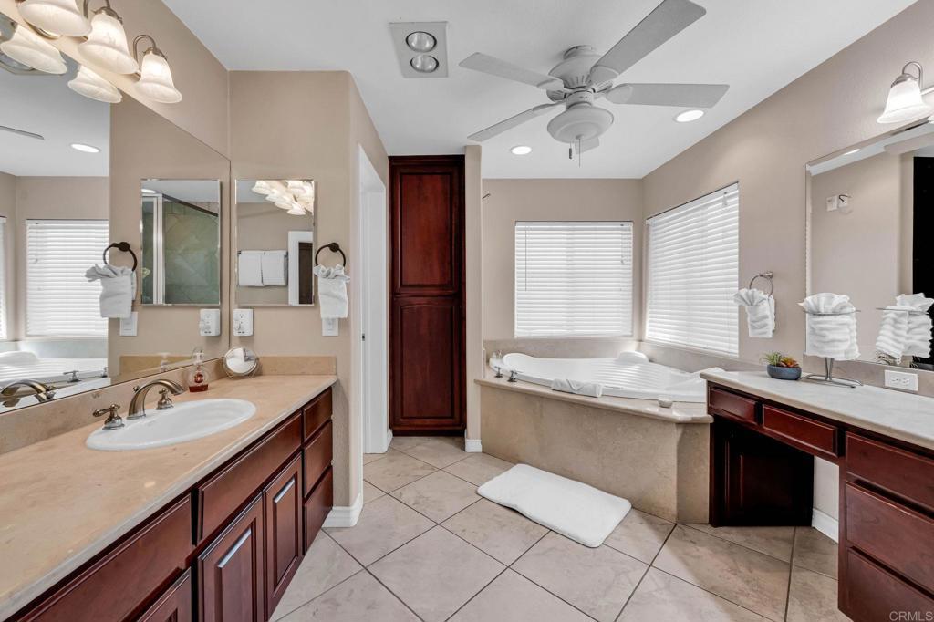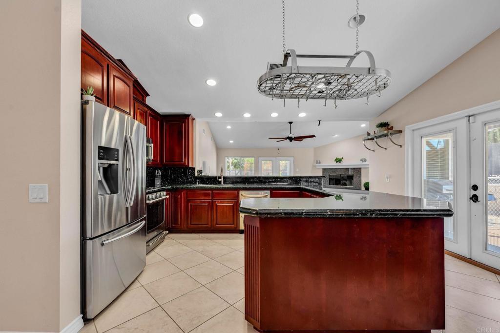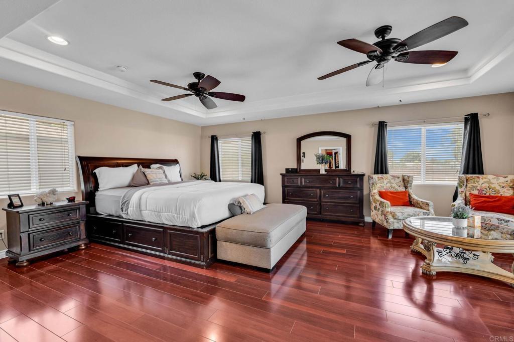 RESORT -STYLE LVING ON .35 ACRE! Welcome to your own private retreat! This stunning home sits on over a third of an acre and is designed for comfort, entertainment, and true California living. Outdoor Oasis, sparkling pool with slide, Hot tub, jumping board, water fountain and two shell waterspouts. Stamped concrete. Pool: custom art designs decorative touches throughout. Plus, pool lights. Outdoor: Patio by Principal Suite: boats, fan, tv hookup, surround system, refreshing water mist Perfect for entertaining. Outlet for holiday lights all around the house. 5 bedrooms, including the two primary suites. The main suite features French door to the pool, walk-in-closet, luxurious bath with jetted tub, dual vanities, make -up vanity. Suite boats an elegant architectural ceiling design. Fans, recessed lighting and its own Private entrance. Second Suite boats its own bathroom with tub & shower and a private entrance. Detached garage can be converted to an ADU. RV or Boat Parking. Iron gate. 14 Queen Palms. Back yard, Retaining wall. Dog run gates. 18 security camaras will stay. Kitchen, many outlets never suffer looking for one. Plenty of storage, space for a trash compactor, New Kitchen water faucet, double dishwasher, Stainless steel appliances. Two fireplaces, one in dining room and second in the beautiful living room, Spacious, High ceilings, fans, surround system connection. Gas fireplace, Pergo floors, Double pane French doors, with blinds. Most window have shutter window covers. Water heater new with overflow tank. 37 PAID, solar panels & two back up batteries. Seller upgraded the pool. Chimneys serviced and repair gas connections, house boast drainage all around the property. New shower spout and shower head in principle suite. Two AC units and two control for each section of the house. Rain Gutters. Many other details that you need to come and see in your future beautiful home. "Seller willing to help buyer with interest rate buy down"