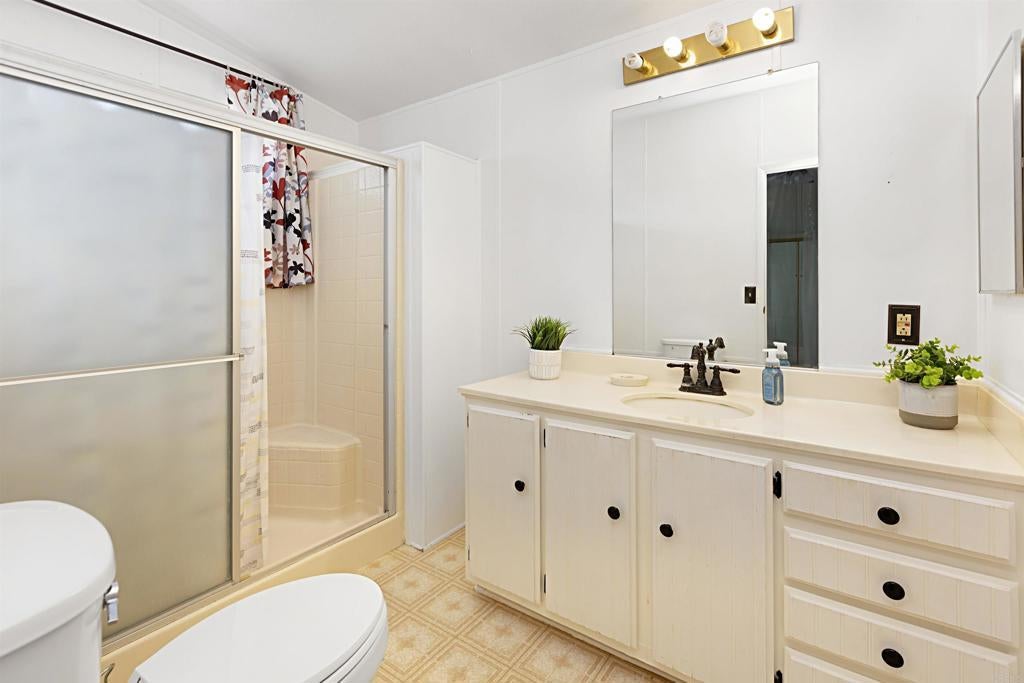 Comfortable three bedroom home on corner lot in premier senior park. Home has been lovingly cared for and has an open floorplan with large living room, dining room and spacious kitchen. The three bedrooms are all generously sized and there is plenty of storage. Additionally there is a laundry room, wheelchair ramp and covered patio to enjoy your morning coffee! The fully accessible yard offers room for container gardening along with a shed for your tools. The Meadows is HOA style ownership which means there is no space rent, only the low HOA fee of $319 per mo. The fee includes trash, water, limited cable TV and all amenities. This active community has a year round heated salt water pool & spa, pickleball/tennis courts, putting green, clubhouse, and much more! Located only 15 minutes from medical, shopping and entertainment and Lake Jennings is just five minutes away.