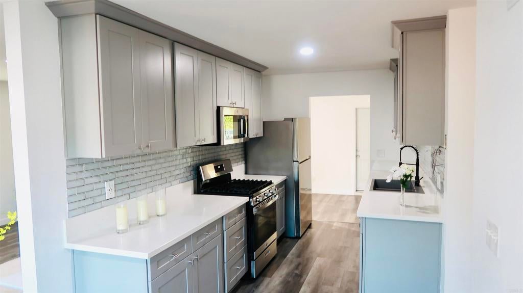 Welcome to beautifully remodeled, 2801 College BLVD in the costal city of Oceanside. Sitting on nearly a 10,000 square foot lot, this freshly painted, (inside-out) single family home, includes 3 bedrooms, 2 full bathrooms, a living room, a family room and a modernized renovated kitchen. It's no mystery that this fully fenced, beautiful Oceanside gem, is located in a highly desired area which is known for it's peace and quiet, bringing more value to the property. As mentioned before, this wonderful Oceanside home includes a generous nearly 10,000 square foot lot made up of durable, fully paved concrete surface, providing ample space for outdoor activities, ADUs, plenty of PARKING for all your cars (can fit up to 10 cars), or potential expansion. The options are endless! Inside the home, features, new vinyl flooring that covers every square footage, bright open layout, upgraded finishes, recessed lights on ceilings, and last but not least the kitchen comes with quartz countertops and NEW stainless steel appliances such as refrigerator, stove, and microwave. The modern updated kitchen offers both style and functionality, making your daily experience as enjoyable as possible. With pictures of interior/rest of exterior and Open House coming soon, there will be no doubt this is the Oceanside home you been looking for.