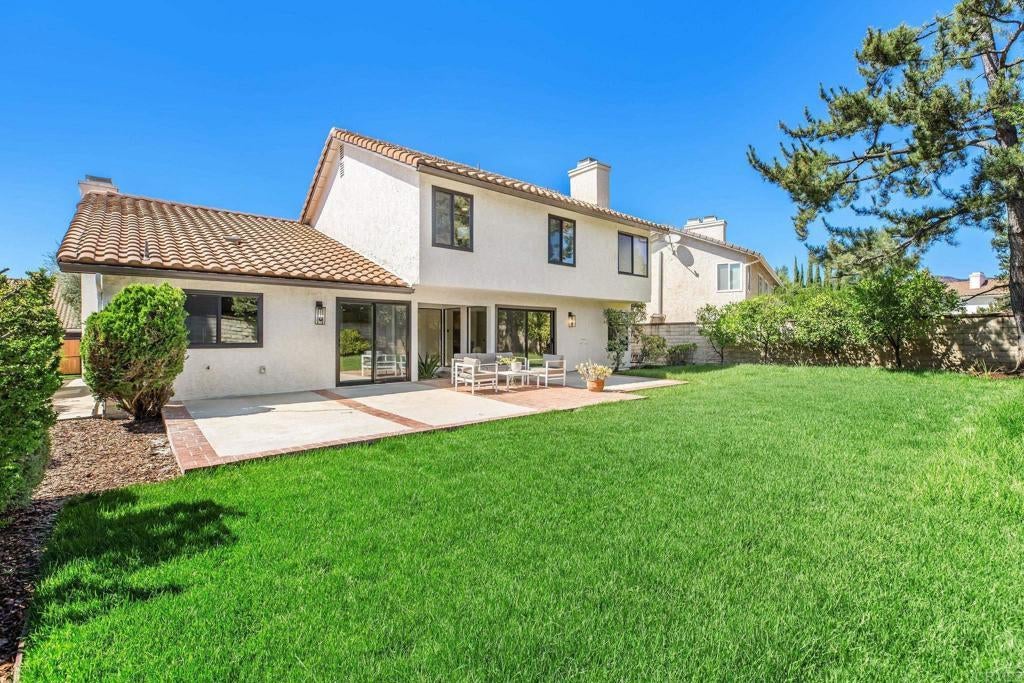 Completely renovated two-story home in the prestigious Morrison Ranch Estates, located on a quiet cul-de-sac in Agoura Hills. This elegant home features warm oak-toned flooring throughout, with a family room that boasts vaulted ceilings, a classic picture window, and a cozy fireplace. A separate dining room connects to the family room, creating a seamless flow for entertaining. Designed with both elegance and function in mind, the kitchen includes white oak cabinetry, creamy stone countertops, an arched range hood with hidden niches, all-new appliances, and gold finishes throughout. The living room makes a statement with black accents, a sleek fireplace, and a built-in dry bar with beverage fridge. A central atrium and a convenient half bathroom complete the main level. Upstairs, your oversized primary suite boasts dual closets and a tranquil, thoughtfully designed bathroom, complete with a freestanding soaking tub, oversized shower with built-in bench, and a dual vanity featuring white oak cabinetry and high-end designer fixtures. Three additional bedrooms upstairs offer generous space, bright natural light, and versatile layouts, ideal for family, guests, or a home office. A fully remodeled hall bathroom features modern finishes and thoughtful design, perfectly complementing the bedrooms and providing comfort for everyday living. The backyard includes a spacious patio and a large grassy lawn, perfect for outdoor dining, play, or gatherings. This home is ideally located near hiking and biking trails, top-rated dining, entertainment, and schools, this home combines modern luxury, thoughtful design, and the best of Agoura Hills living. Experience this Morrison Ranch Estates gem—schedule a private showing today.