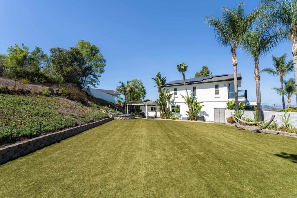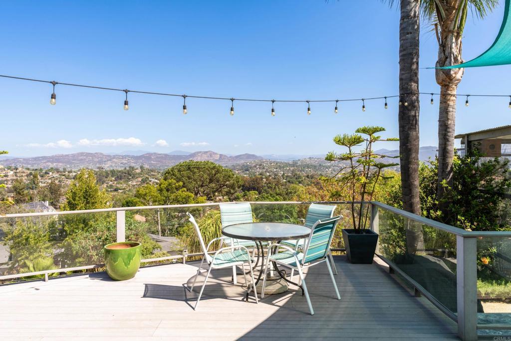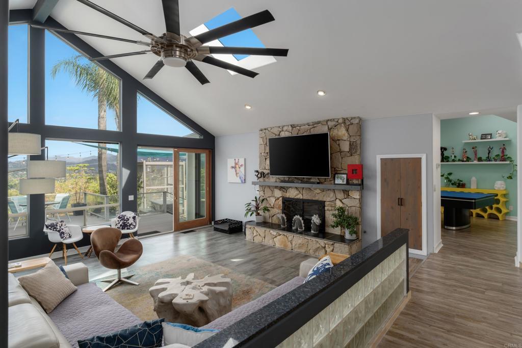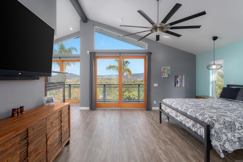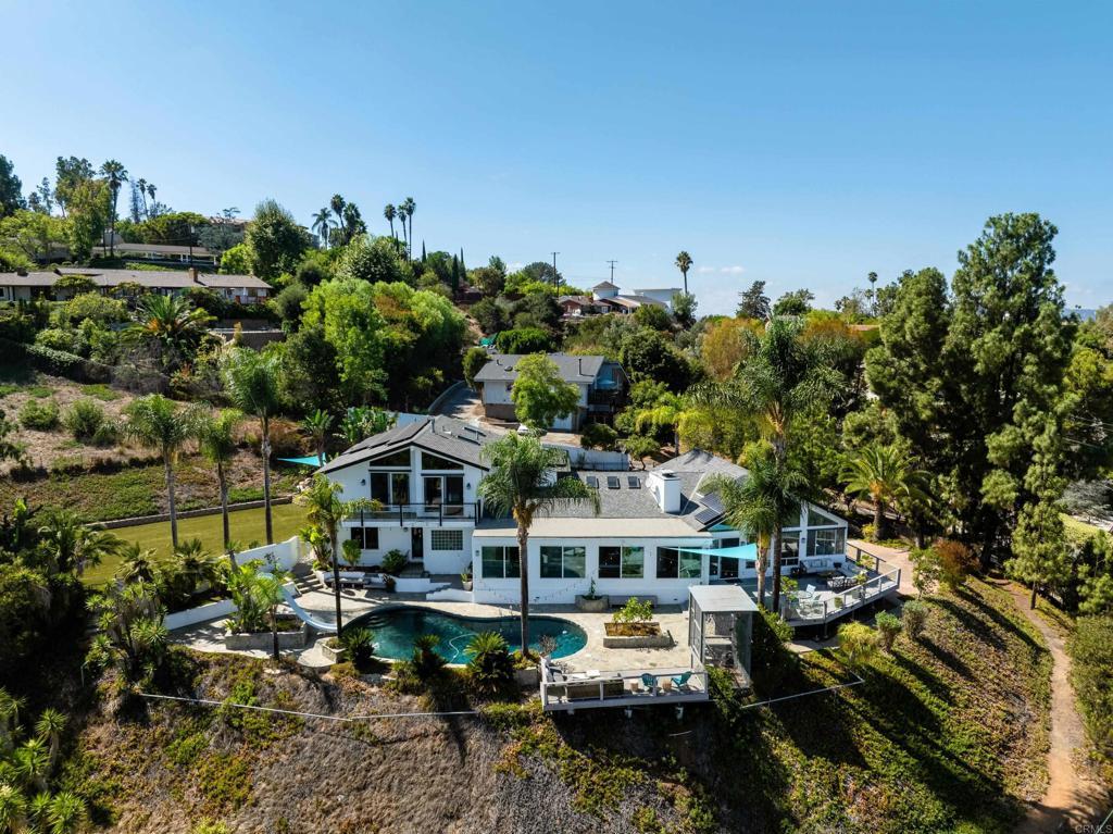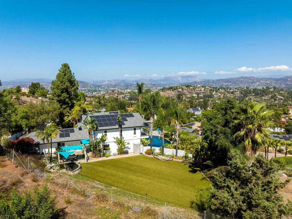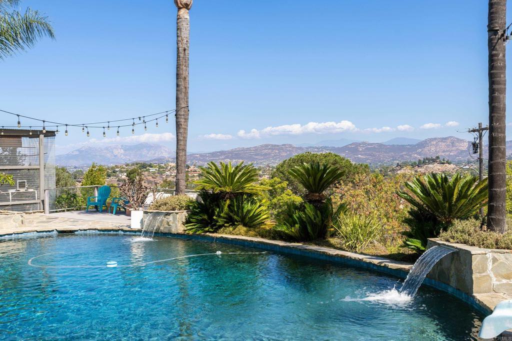 Absolute STUNNER in Mount Helix / Horizon Hills! This private contemporary California-style home is gorgeous inside and out, showcasing 180-degree panoramic views. Modern finishes throughout, including stainless steel appliances, stone counters, travertine & luxury vinyl flooring, custom light fixtures, vaulted ceilings, multiple skylights, and two gas fireplaces. The entire second floor primary suite is the perfect retreat, with floor to ceiling windows and private balcony overlooking pool and amazing mountain views. Massive spa-like ensuite bathroom with a huge custom walk-in closet, a secondary closet, tons of storage and its own HVAC. An attached large studio/granny flat/ADU (currently renting for $1500/mo.) includes a private exterior entry, kitchen, bathroom and walk-in closet. This beautiful, gated estate, just shy of an acre, is a fully fenced corner lot with spacious artificial grass area, koi pond, multiple decks, outdoor kitchen, fruit trees, RV parking, and a large in ground heated pool with waterfalls. In addition, there is an oversized attached 4-car garage, 40 solar panels and dual zoned main floor HVAC.
