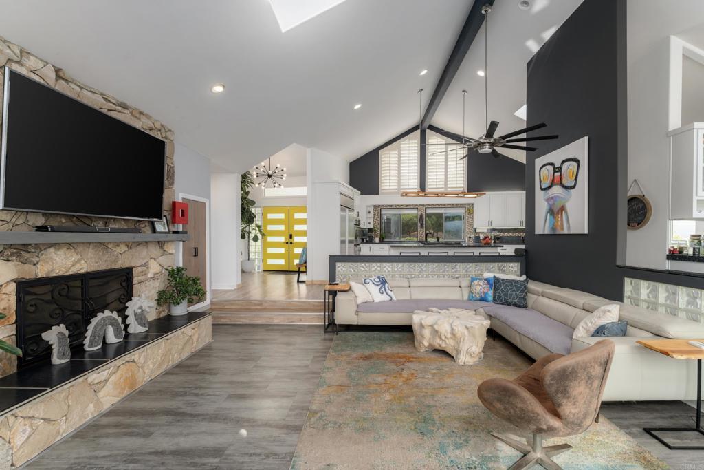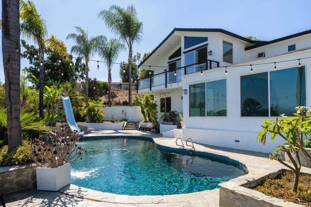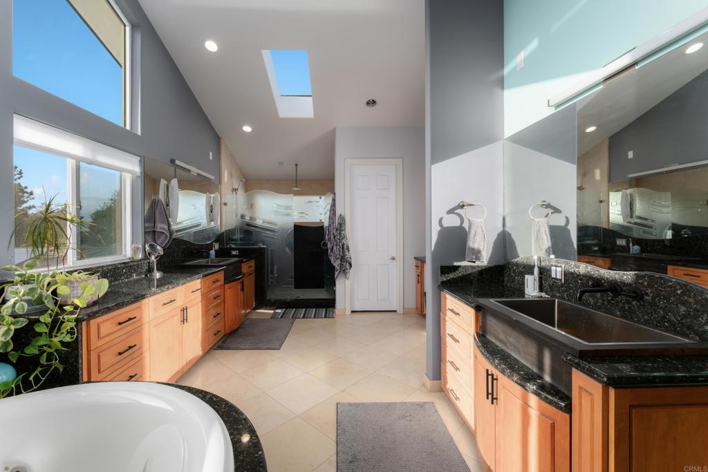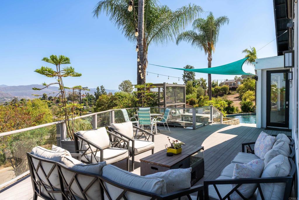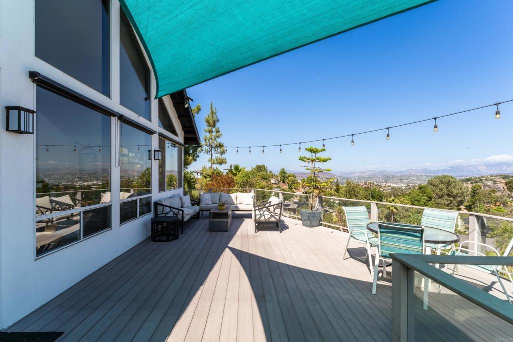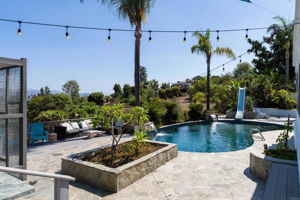 Absolute STUNNER in Mount Helix / Horizon Hills! This private contemporary California-style home is gorgeous inside and out, showcasing 180-degree panoramic views. Modern finishes throughout, including stainless steel appliances, stone counters, travertine & luxury vinyl flooring, custom light fixtures, vaulted ceilings, multiple skylights, and two gas fireplaces. The entire second floor primary suite is the perfect retreat, with floor to ceiling windows and private balcony overlooking pool and amazing mountain views. Massive spa-like ensuite bathroom with a huge custom walk-in closet, a secondary closet, tons of storage and its own HVAC. An attached large studio/granny flat/ADU (currently renting for $1500/mo.) includes a private exterior entry, kitchen, bathroom and walk-in closet. This beautiful, gated estate, just shy of an acre, is a fully fenced corner lot with spacious artificial grass area, koi pond, multiple decks, outdoor kitchen, fruit trees, RV parking, and a large in ground heated pool with waterfalls. In addition, there is an oversized attached 4-car garage, 40 solar panels and dual zoned main floor HVAC.