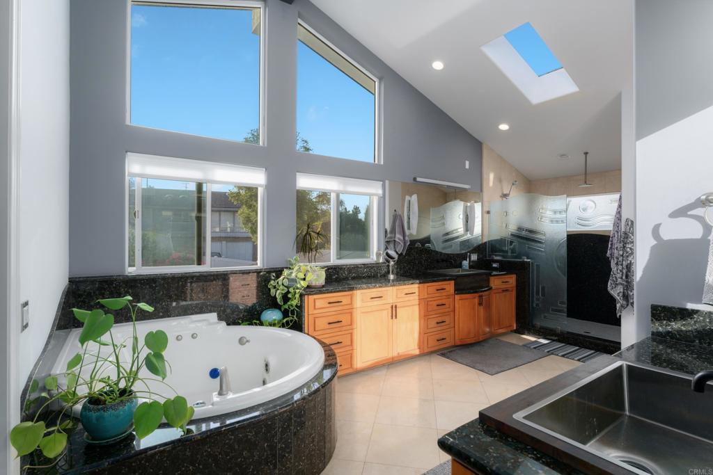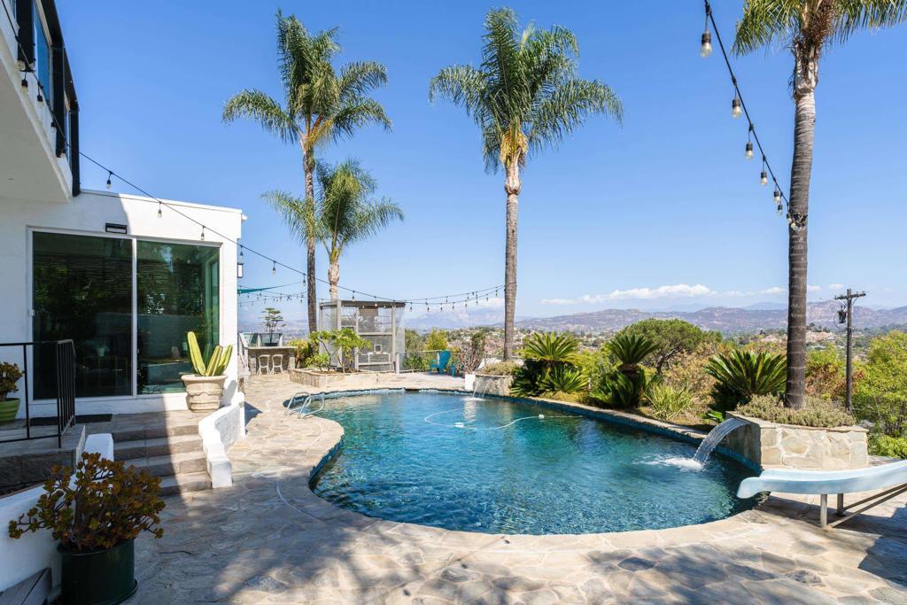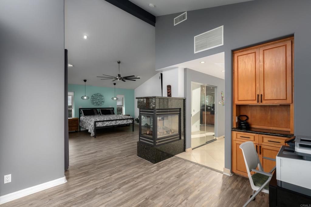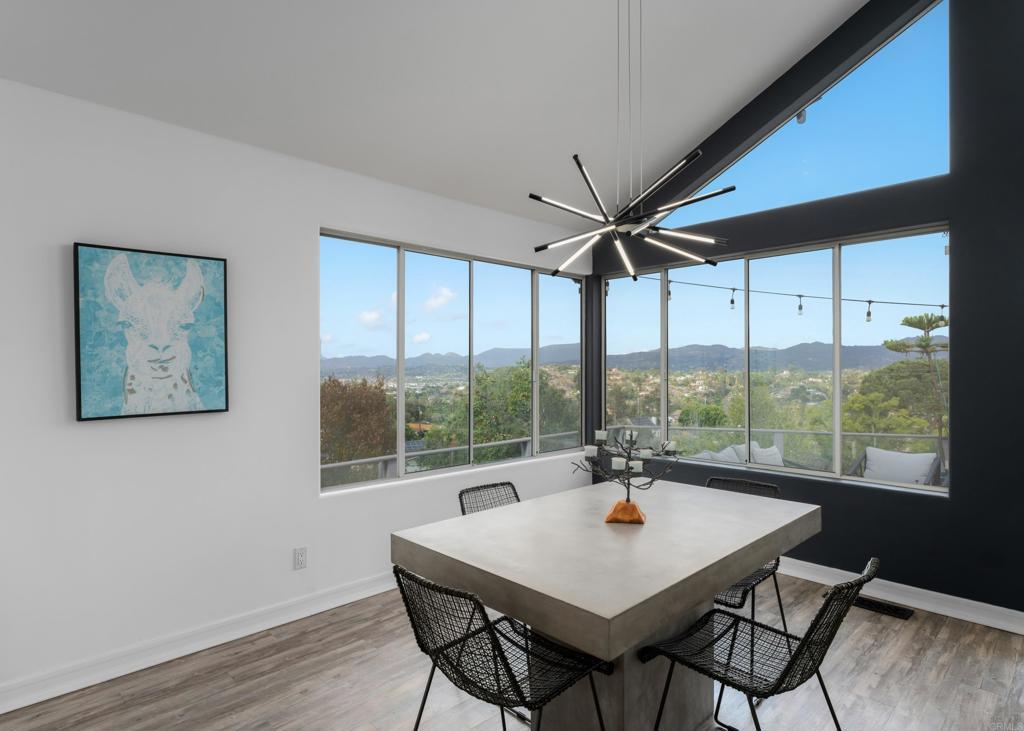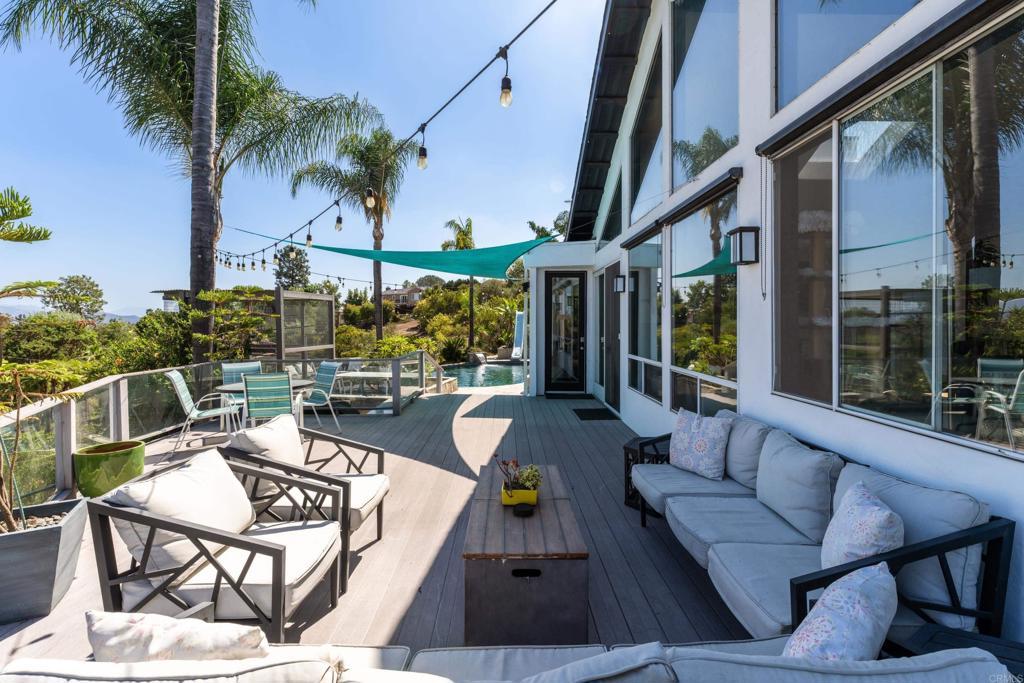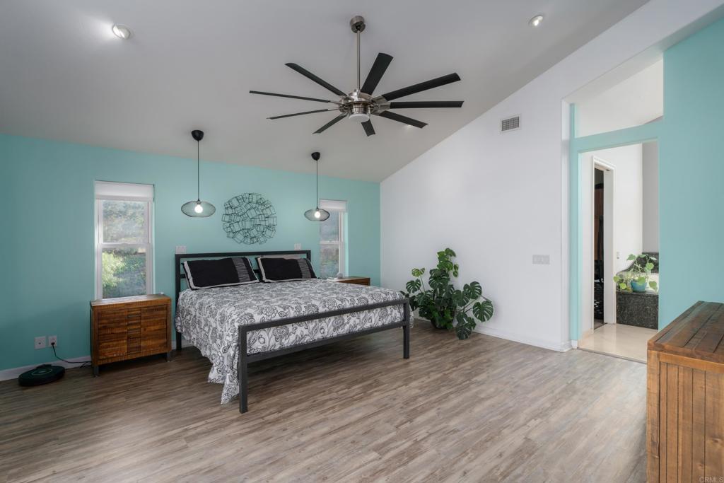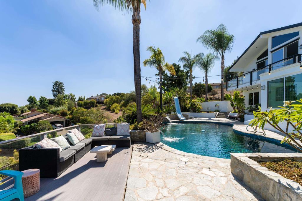 Absolute STUNNER in Mount Helix / Horizon Hills! This private contemporary California-style home is gorgeous inside and out, showcasing 180-degree panoramic views. Modern finishes throughout, including stainless steel appliances, stone counters, travertine & luxury vinyl flooring, custom light fixtures, vaulted ceilings, multiple skylights, and two gas fireplaces. The entire second floor primary suite is the perfect retreat, with floor to ceiling windows and private balcony overlooking pool and amazing mountain views. Massive spa-like ensuite bathroom with a huge custom walk-in closet, a secondary closet, tons of storage and its own HVAC. An attached large studio/granny flat/ADU (currently renting for $1500/mo.) includes a private exterior entry, kitchen, bathroom and walk-in closet. This beautiful, gated estate, just shy of an acre, is a fully fenced corner lot with spacious artificial grass area, koi pond, multiple decks, outdoor kitchen, fruit trees, RV parking, and a large in ground heated pool with waterfalls. In addition, there is an oversized attached 4-car garage, 40 solar panels and dual zoned main floor HVAC.