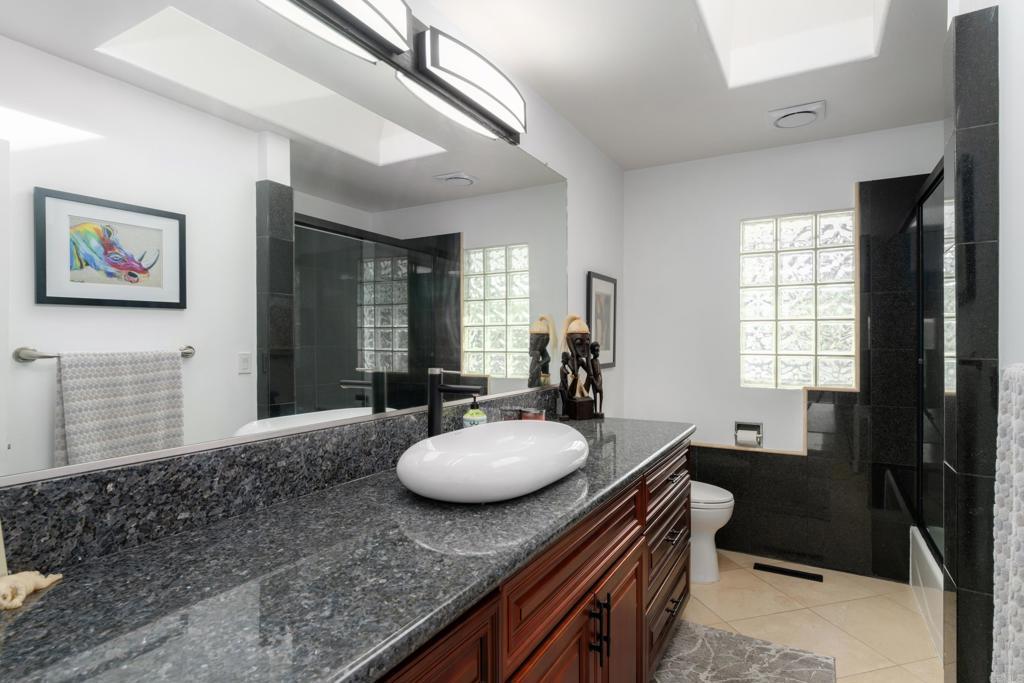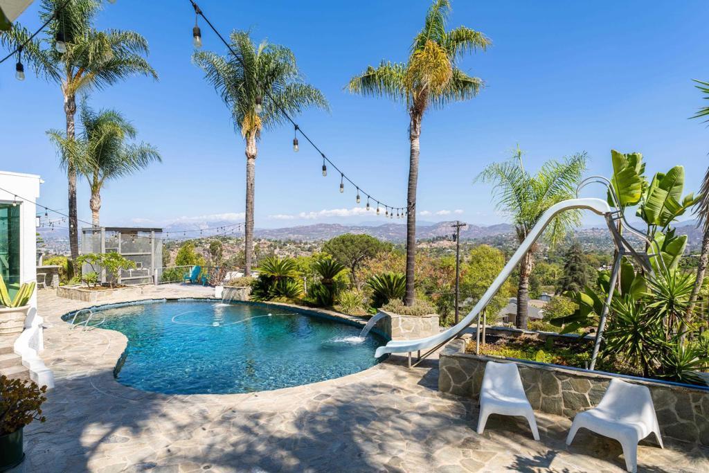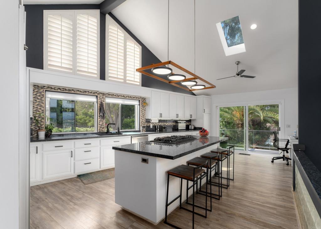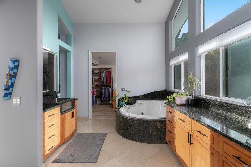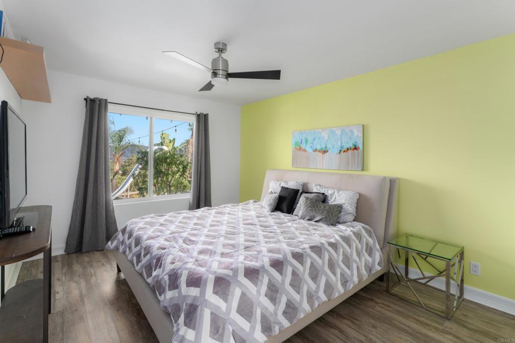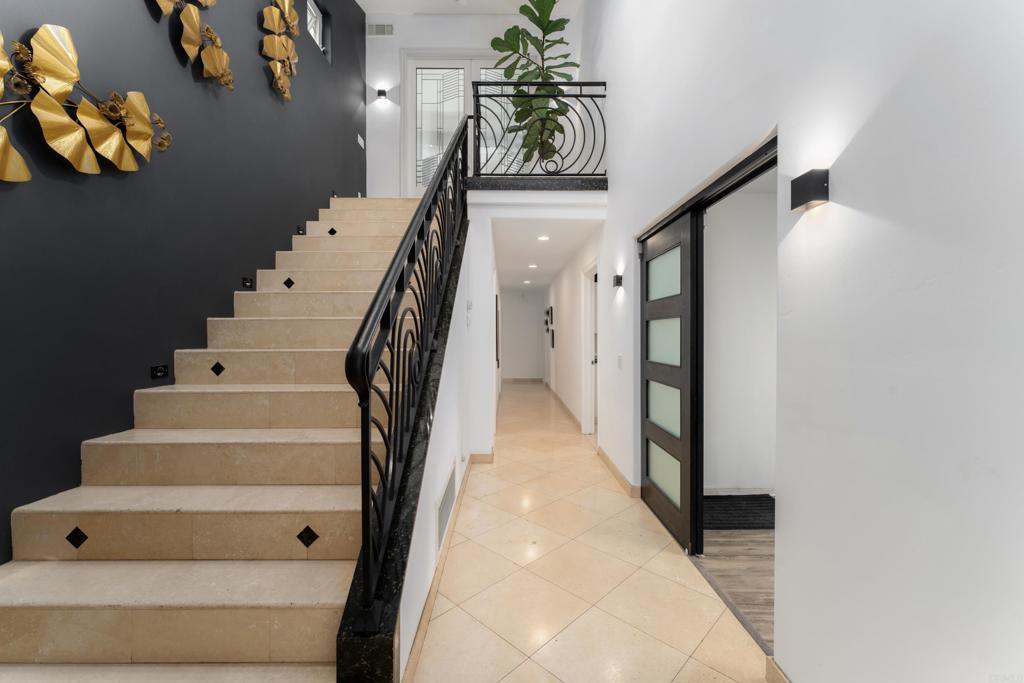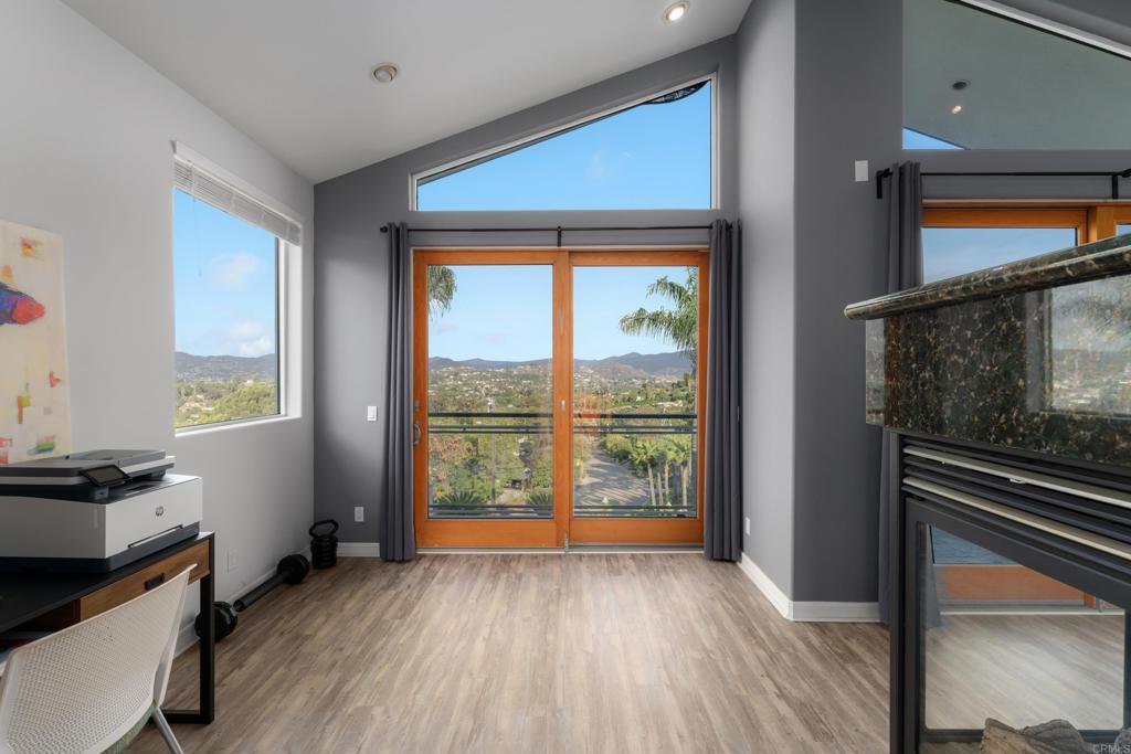 Absolute STUNNER in Mount Helix / Horizon Hills! This private contemporary California-style home is gorgeous inside and out, showcasing 180-degree panoramic views. Modern finishes throughout, including stainless steel appliances, stone counters, travertine & luxury vinyl flooring, custom light fixtures, vaulted ceilings, multiple skylights, and two gas fireplaces. The entire second floor primary suite is the perfect retreat, with floor to ceiling windows and private balcony overlooking pool and amazing mountain views. Massive spa-like ensuite bathroom with a huge custom walk-in closet, a secondary closet, tons of storage and its own HVAC. An attached large studio/granny flat/ADU (currently renting for $1500/mo.) includes a private exterior entry, kitchen, bathroom and walk-in closet. This beautiful, gated estate, just shy of an acre, is a fully fenced corner lot with spacious artificial grass area, koi pond, multiple decks, outdoor kitchen, fruit trees, RV parking, and a large in ground heated pool with waterfalls. In addition, there is an oversized attached 4-car garage, 40 solar panels and dual zoned main floor HVAC.