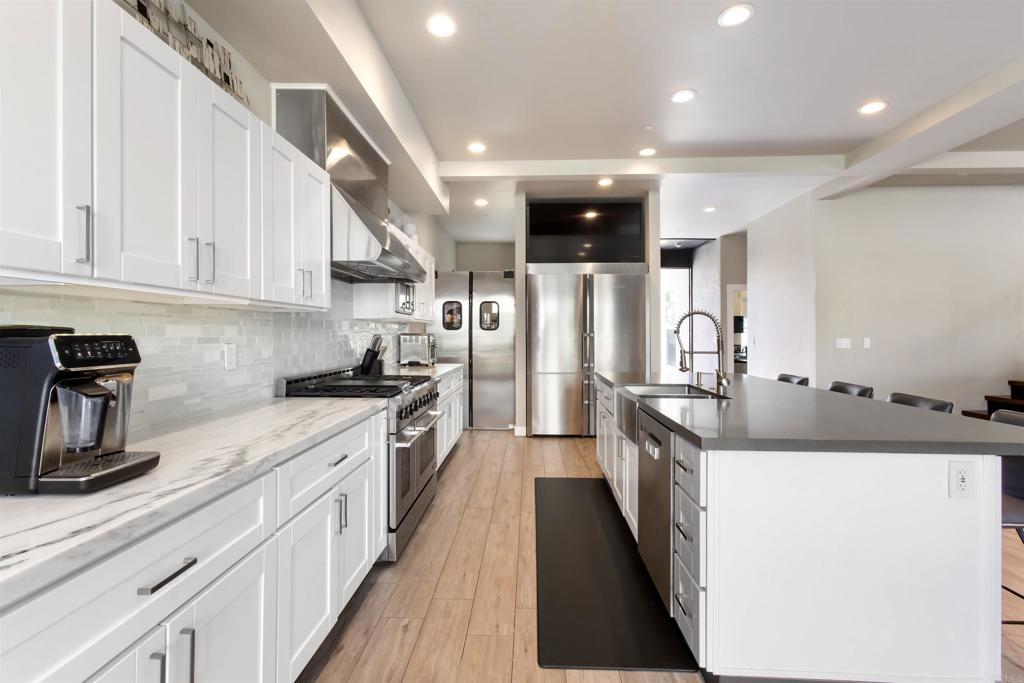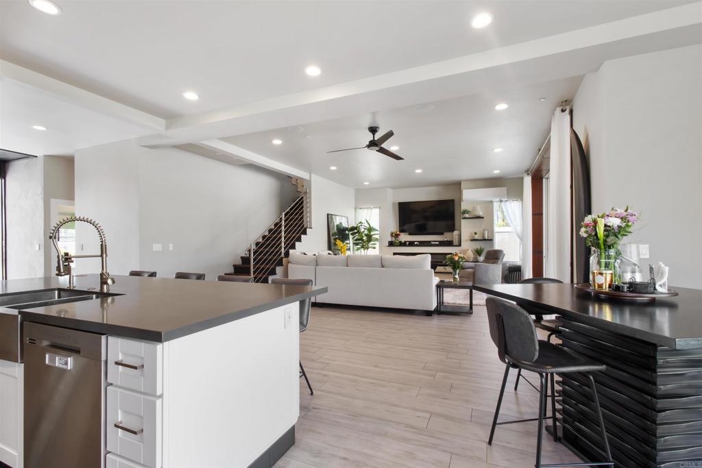Welcome to your dream home in the heart of Pacific Beach! This stunning coastal masterpiece offers over 3,400 sq ft of thoughtfully designed living space with style, function, and entertaining in mind. Step into an expansive open-concept layout flooded with natural light, ideal for hosting or simply enjoying everyday beachside living. The gourmet kitchen is a chef's dream, featuring a full-size chef-style pantry and premium finishes throughout. Retreat to one of three spacious decks, including a private rooftop deck with breathtaking ocean and bay views-perfect for sunset cocktails or morning yoga. The detached garage offers ADU potential, ideal for quests, a home office, or future rental income. Every inch of this home has been crafted to impress. From its high-end finishes to the unbeatable location just minutes from the sand, this is Pacific Beach living at its finest.