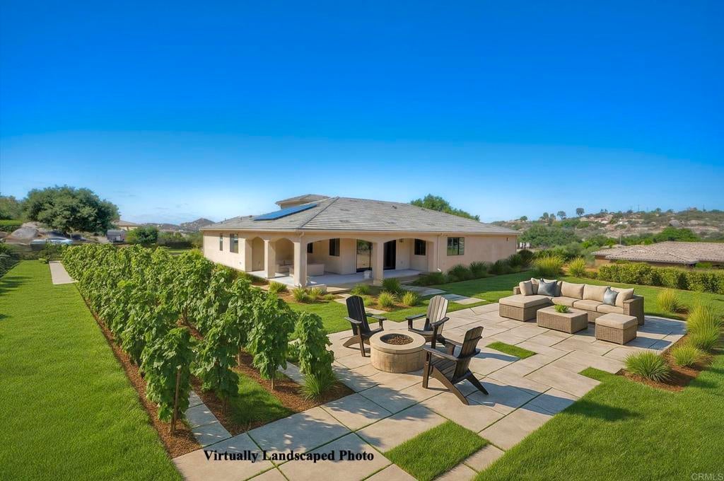Live in the majestic, vineyard-inspired community of Trevi Hills Vineyard Estates—where luxury meets serenity. The final remaining Plan 12, never to be built again, rests on a super-flat, fully usable 1.014-acre lot. This single-story masterpiece offers 3 bedrooms, 3.5 baths, and 2,635 sq ft of airy, open-concept living with LVP flooring, quartzite countertops, and stainless appliances. Soaring 9-ft ceilings and stacking sliders open to a covered wrap-around patio, perfect for entertaining beneath the hills. Just a short stroll to the on-site winery, this gated enclave offers city water, sewer, fiber internet, and the unique Co-Op Wine Vine Program for true vineyard living.