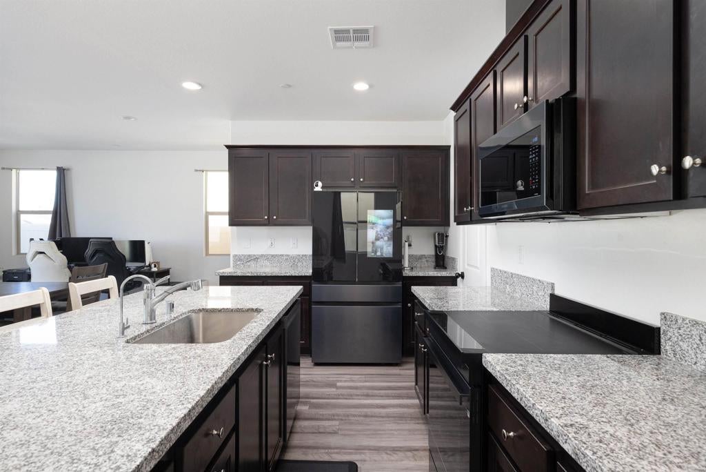 An Opal Skye Home That’s Ready to Welcome You Today! This detached condo lives like a single-family home with a spacious layout, upgraded wood-style flooring, and a loft turned home theater. Smart features include fingerprint locks, touchscreen switches, USB outlets, and a whole-house water softener. Enjoy a chef-ready kitchen with a large island, gas and 240V hookups, and a 3-stage reverse osmosis system. One of the largest backyards in the community, plus 19 owned solar panels and access to resort-style amenities including pool, spa, playground, and BBQ areas. Modern comfort and family-friendly space, ready for you today.