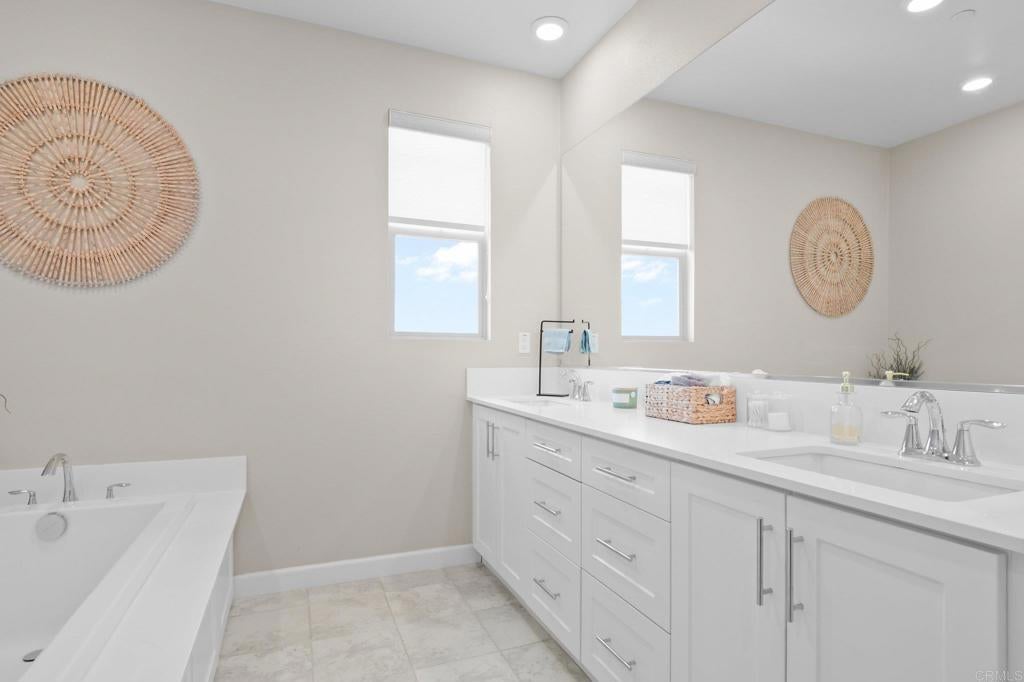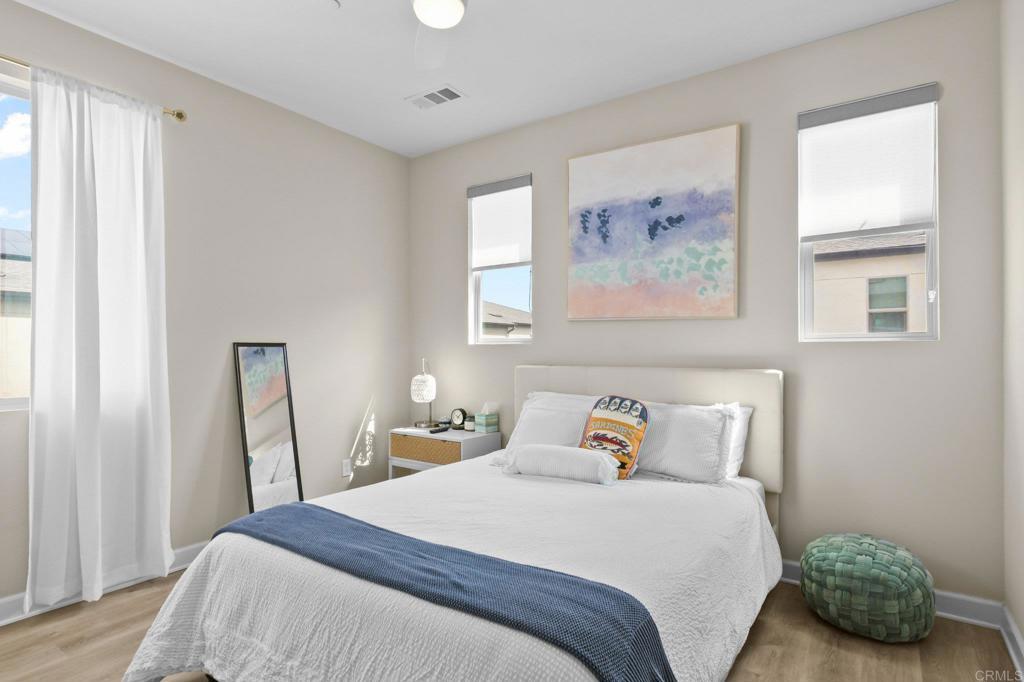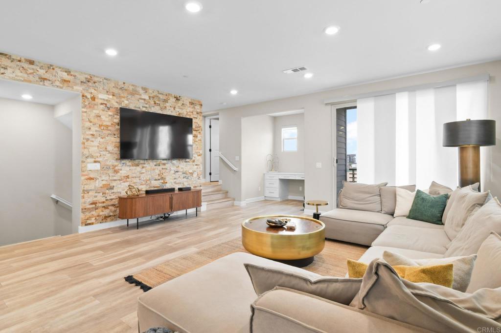 Beautiful Corner Townhome in Sought-After Millenia! Rarely available three-story corner unit in the highly desired Millenia community! This spacious townhome features an open-concept living area that seamlessly connects the living room, dining room, and kitchen perfect for modern living and entertaining. The chef’s kitchen boasts elegant quartz countertops, shaker cabinets, a custom wood island, and stainless steel appliances. Natural light pours in through large windows and the balcony off the living room, highlighting the home’s beautiful custom stacked-stone accent wall. Enjoy energy efficiency with paid solar and a tankless water heater to help lower monthly costs. The first floor offers a full bedroom and bathroom with its own private patio ideal for guests or multigenerational living. Upstairs, you’ll find three additional bedrooms, including a stunning primary suite with a walk-in closet and a luxurious bathroom. The laundry room is conveniently located on the top floor. Step outside and enjoy everything Millenia has to offer a sparkling pool, parks, dog park, community garden, and more. All just minutes from Otay Ranch Town Center, dining, and freeway access.