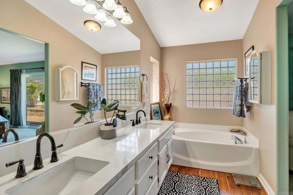 Highly sought after, largest model and rarely available plan 5 in Crown Hills. This 4 bedroom, 2 bath home has it all - 26 OWNED SOLAR PANELS, recently installed HVAC system, and remodeled inside and out! This home has many designer touches, including cathedral ceilings, plantation shutters, recessed lighting, dual fireplace serving both the living room & family room. The community has a large, well-maintained pool and spa, a well-outfitted gym and a community center available for large groups. Tennis courts with lots of well-maintained green spaces with walking paths. All this and a low HOA. You will love the friendly neighbors and the whole Alpine community.