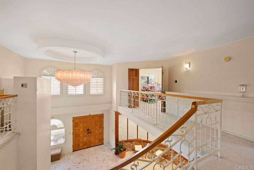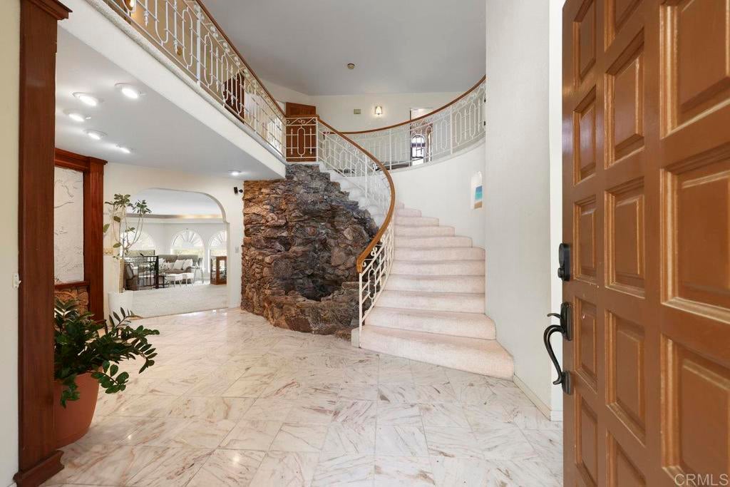 4 bedrooms, 4 bathrooms, 2 family rooms, 2 dining rooms, hidden wine cellar, Putting Green out back, waterfall entry, sand cast art wall from renowned San Diego Artist and Architectural engineer of the San Diego Zoo Charles Faust, 3 car garage, solar w/ 3 Tesla batteries and EV hookups, elevator/lift for those who wish to skip the stairs, and breathtaking views from every window in the entire home. Situated atop the Prestigious San Diego Country Estates, this custom built 3,859 sqft home is one of a kind. Drive your golfcart to your tee time or watch the golfers from the panoramic views in your backyard. Rear of the property situated Easte to capture every morning sunrise, and unobstructed sunshine for gardening or sun bathing. Full privacy at the top of the mountain with no neighbors encroaching your privacy or views. The property is just over half an acre (.53) at 23,086 sqft with lots of driveway parking. MAJOR VIEWS in this Master Plan Community.