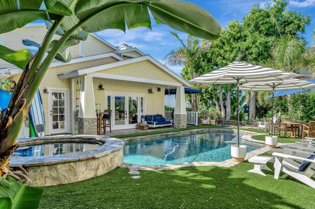 Experience coastal luxury perched overlooking the Pacific Ocean from your two beautifully designed homes. The front home features approximately 2,358 sq. ft., boasting four bedrooms and three bathrooms with a flexible floor plan ideal for multi-generational living or work-from-home flexibility. Upstairs, the expansive primary suite offers serenity and refined comfort, complete with a soaking tub, steam shower, dual sinks, abundant bespoke storage abounds, two primary closets, a dedicated shoe closet, and more storage cabinetry. A bonus office/bedroom sits nearby, creating the perfect retreat for relaxation or productivity or use it as a bedroom. All with ocean views! The main level highlights two bedrooms and two baths, a cozy formal living room, a spacious great room, and a recently remodeled chef’s kitchen equipped with a GE Profile column refrigerator and freezer, Viking range and hood, marble countertops, double-drawer Fisher & Paykel dishwasher, and 25-lb. ice maker. There's even a trash compactor. Meticulous craftsmanship is evident throughout — from the true inset cabinetry and hidden drawers to the thoughtful appliance garages and designer finishes. Luxury continues outdoors with a saltwater pool and spa surrounded by new turf and 2024 drainage upgrades. A dry bar with dual beverage refrigerators in the great room and a full laundry room open directly to this resort-style space. Three gas fireplaces—including one at the foot of the primary bed—add warmth and ambiance throughout the home. The front home is powered by 40 solar panels (PPA approx. $0.20/kWh, transferrable) is served by private parking in a two-car garage, plus an additional one-car garage. At the rear of the property, on the alley, is a separate two-bedroom, one-bath second home (approx. 899 sq. ft.) above a three-car garage, currently leased for $4,395/month. This second home features a newly remodeled bathroom (2025) and refreshed kitchen (2024) with new counters, sink and more. Updated garages include brand-new epoxy floors, slat walls, stainless sinks, and custom storage, with an EV charger serving the main residence. Additional highlights include a movie/playroom beneath the main home, ideal for guests or family entertainment, and an ocean-view deck above the front garage showcasing stunning sunsets. Recent upgrades include a 2025 water heater with recirculating system, as well as a whole-home water softener and filtration system. This is a smart home with wifi controls of lighting, the pool, heating, video, door locks, appliances and more! Some sprinklers out front on a drip system, but low water usage with turf and low water usage plants. This exceptional dual-home property combines craftsmanship, design, and effortless coastal living — a rare opportunity in Ocean Beach.
