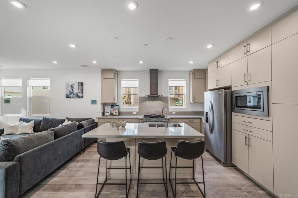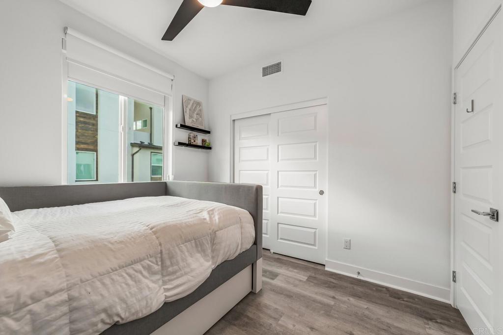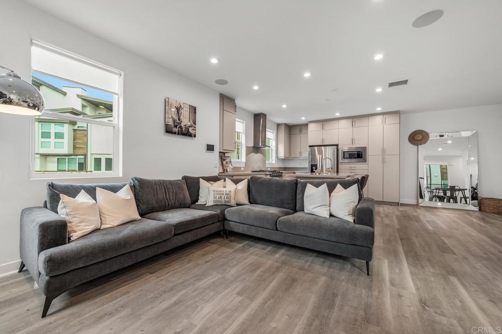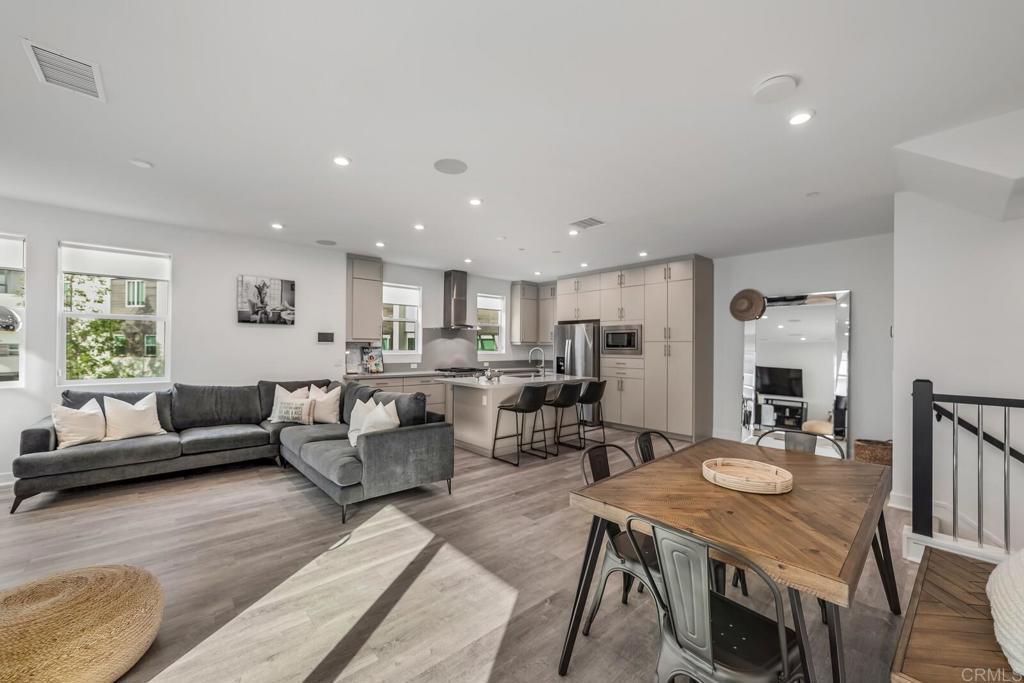 Ask About 2/1 BUYDOWN AVAILABLE (Lowers your interest for 2% the 1st 12 months, and 1% the next 12 months). A sophisticated tri-level townhome nestled in the sought-after Avella community by Toll Brothers within the heart of Civita, Mission Valley. This contemporary residence blends upscale finishes, cutting-edge smart home features, and an unbeatable location near everything San Diego has to offer. Interior Highlights : Step inside to discover an open-concept floor plan adorned with luxury engineered wood flooring throughout, creating a seamless flow between living spaces. Enjoy surround sound throughout the home, ideal for entertaining or movie nights, while ceiling fans in all bedrooms ensure year-round comfort. The blackout shades provide a serene retreat and privacy in each bedroom. The kitchen boasts stainless steel Whirlpool appliances, sleek cabinetry, and modern finishes, perfect for culinary enthusiasts. A wall-mounted smart home system and front door security camera offer convenience and peace of mind. This corner unit location floods the home with abundant natural light from multiple exposures, enhancing its bright and airy ambiance. Outdoor & Garage Features Enjoy the tile-finished balcony and rooftop deck—perfect for morning coffee or evening gatherings with panoramic views of the Civita neighborhood. The attached two-car garage includes a storage area and pre-wiring for electric vehicle charging, along with a tankless water system for efficiency. Community & Location Living in Civita means access to resort-style amenities, including a state-of-the-art recreation center, two sparkling pools, spas, fitness facilities, BBQ areas, parks, and walking trails throughout the award-winning master-planned community. Perfectly positioned in Mission Valley, Civita offers unmatched convenience—just minutes from major freeways (I-8, I-805, and SR-163), Fashion Valley and Mission Valley malls, Costco, restaurants, coffee shops, and the future Civita retail center. Downtown San Diego, beaches, and the airport are all within a short drive. Experience modern living at its finest—schedule your private tour of 2875 Avella Circle today!