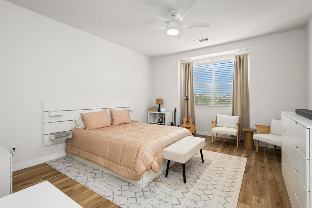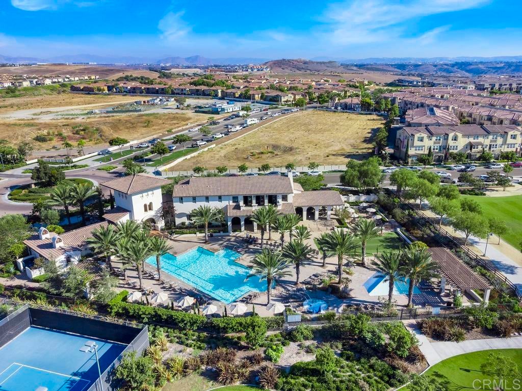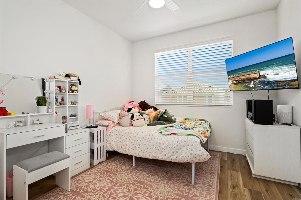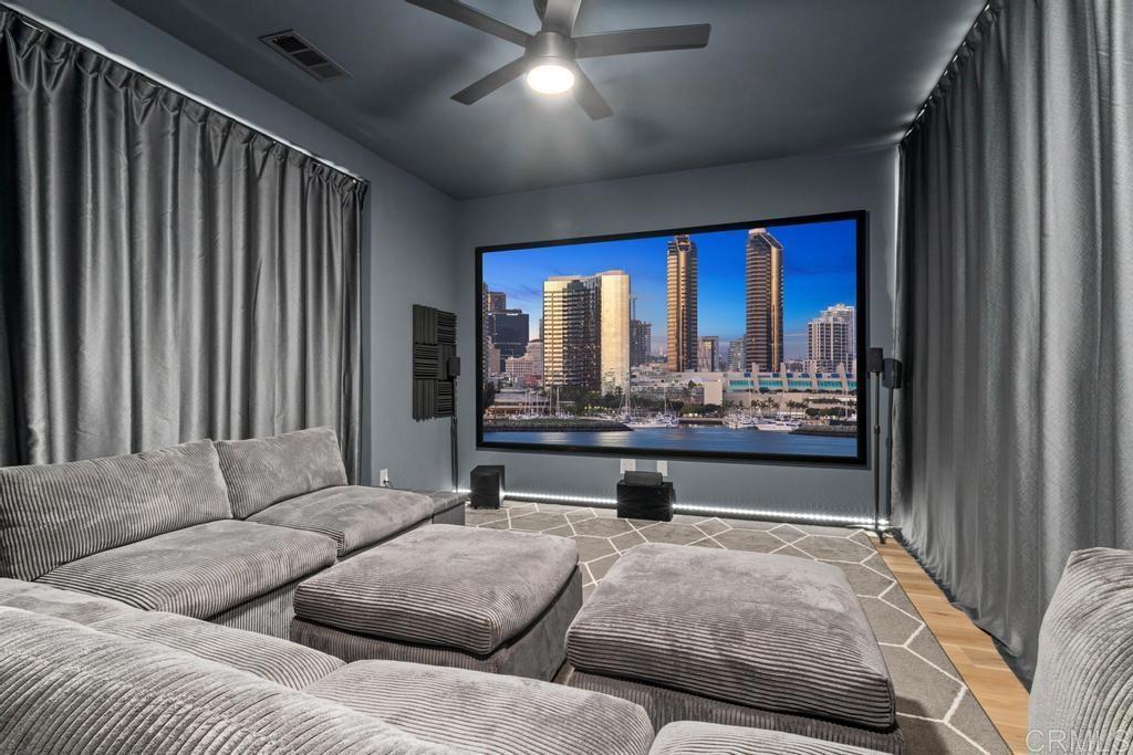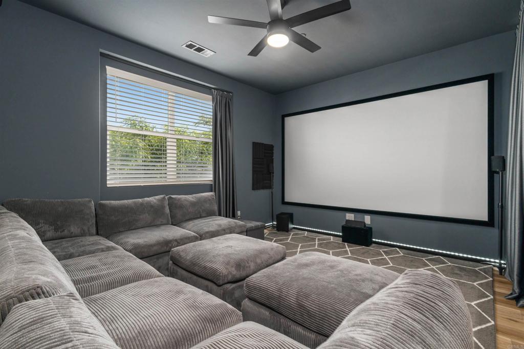 Step into this exceptional tri-level townhome in the Village of Montecito, a rare opportunity to own one of the most thoughtfully upgraded homes in the community. This 4 bedroom, 3.5 bathroom residence offers 2,342 square feet of beautifully designed living space created for modern living and effortless comfort. The open-concept main level welcomes you with luxury vinyl flooring, high ceilings, and abundant natural light. The chef-inspired kitchen features Samsung smart appliances, quartz countertops, a large island with bar seating, and custom cabinetry that provides exceptional storage. Perfectly connected to the living and dining area, this inviting space is ideal for entertaining or relaxing at home. Upstairs, the primary suite offers a serene retreat with a spa-style bathroom, dual sinks, an oversized shower, and a walk-in closet. Two additional bedrooms, a full bathroom, and a generous laundry room complete this level, combining practicality and style for everyday living. The third floor is a true highlight, featuring a private bedroom with its own full bathroom and a professionally designed home theater loft that conveys with the home. It’s the perfect space for guests, extended family, or movie nights. Every detail has been curated for convenience and peace of mind, including smart-home technology, solar panels, an EV charger, and all appliances included. The attached two-car garage offers additional storage and direct access. Located in the highly sought-after Village of Montecito, residents enjoy resort-style amenities such as a pool, spa, clubhouse, fitness center, playgrounds, and BBQ areas. All of this is just steps from Grove Park and within walking distance to highly rated schools. This stunning home delivers the perfect blend of modern design, comfort, and location... truly one of a kind in Otay Ranch.