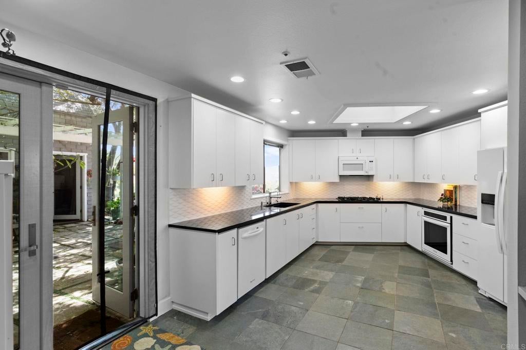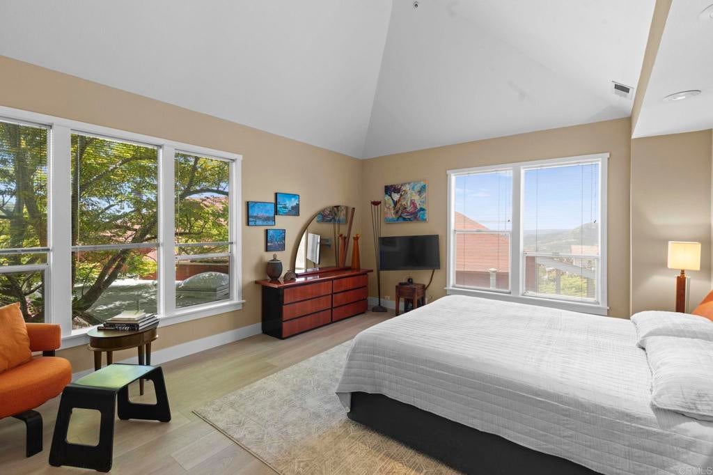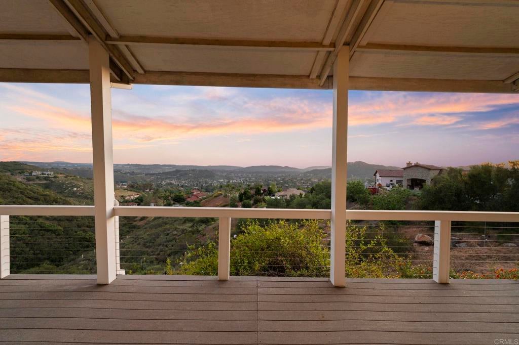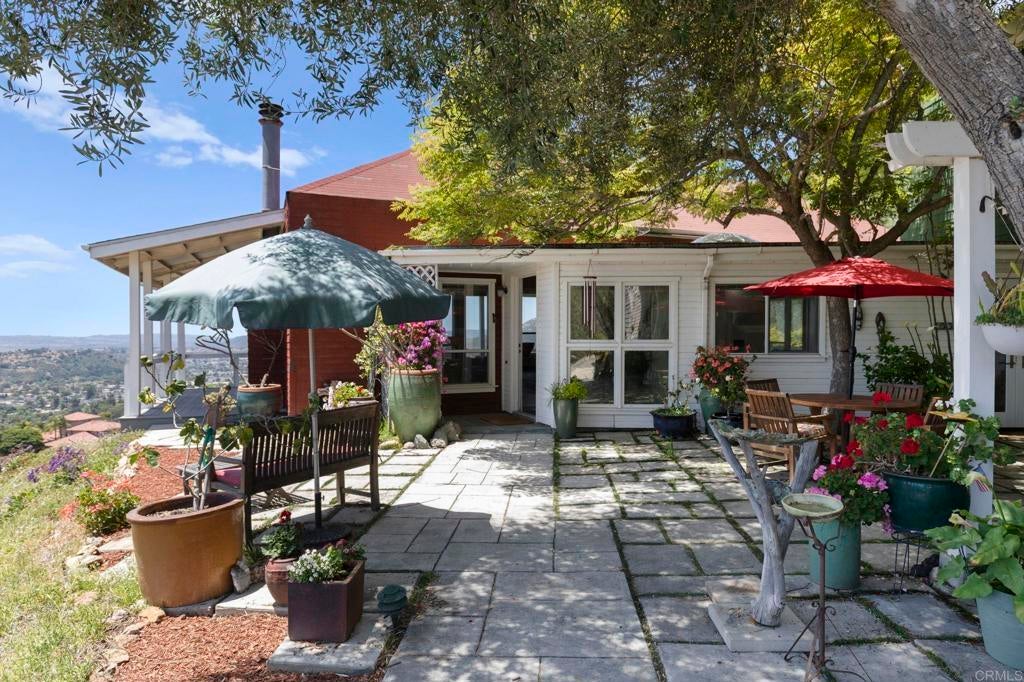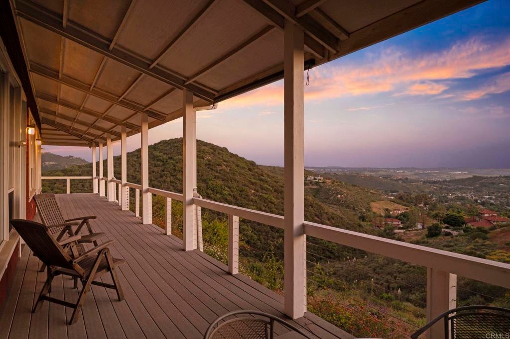 Set on over 2 acres in Poway’s coveted High Valley neighborhood, this property is designed for outdoor living and entertainment, with multiple spaces—including a wraparound porch, stone courtyard, and private backyard—perfect for enjoying panoramic west-facing views that stretch to the Pacific Ocean. Inside, vaulted ceilings, abundant natural light, and an open layout create seamless indoor-outdoor flow throughout the 3BR/2.5BA home, which also features a dedicated office (optional 4th bedroom) and a detached studio with water and electricity—ideal for creative use or potential ADU conversion. The spacious primary suite offers a soaking tub, dual vanities, and a 15-foot walk-in closet, while owned solar with a Tesla Powerwall, whole-house water filtration system, and a three-car garage add modern efficiency and convenience. With over an acre east of the private driveway, there is potential for a future lot split and second residence. Close to shopping, dining, and top-rated schools, this rare High Valley opportunity captures the best of Poway living.
