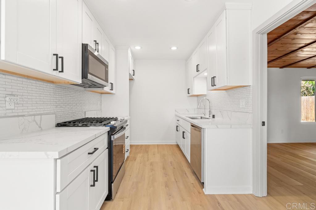 Renovated single level home situated on a cul de sac with a peekaboo view of El Cajon valley and surrounding mountains. With hard surface flooring, fresh paint, and updated fixtures throughout, this home is ready for you to move in. Large common area with an open concept connecting the living, dining, and kitchen. White shaker cabinets, upgraded counters, tile backsplash, and stainless steel appliances make up the kitchen. There is a bonus room located off the common area with direct access to the back yard and garage. If the 4 bedrooms plus the bonus room wasn't enough, there is a finished in shed detached from the home that can be used as a home office, gym, playroom, whatever fits your lifestyle. Come see this one today before it's gone!