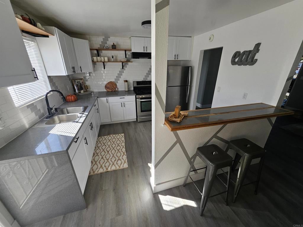 Price Reduction! Welcome to your move-in ready home in Chula Vista! Close to the 805 freeway, this large lot comes ready with a beautiful low maintenance front yard, recently remodeled kitchen and bathrooms, and new floors throughout. The stove, fridge, and a new washer/dryer combo unit (in closet) are included. A large back yard is ready for your personal touch. The back fence divides a separate expanded area (with it's own front entrance) ready for you to add an ADU! Or, expand the yards potential! Come see this move-in ready property with investment possibilities.