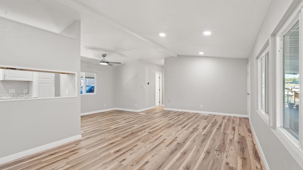 Newly Remodeled 3 Bed, 2 Bath Home with Oversized Porch! Welcome to 13490 Highway 8 Business #8 in Lakeside. This bright, open home features vaulted ceilings, recessed lighting, and brand-new vinyl flooring throughout. The kitchen offers updated appliances, stylish cabinetry, and plenty of counter space. Both bathrooms have been upgraded for a modern touch. The split floor plan provides privacy, with the primary suite featuring its own en-suite bath. Additional highlights include a large laundry room, central A/C and heat, dual-pane windows, and a newer roof. Step outside to enjoy the oversized porch with mountain views, a freshly mulched yard, and a storage shed. This home is located at the end of a quiet cul-de-sac in a welcoming, family- and pet-friendly community with a pool and clubhouse, and it’s conveniently close to shopping, dining, schools, and freeway access.