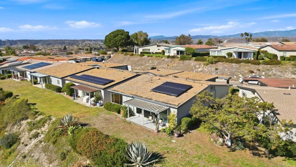 Discover relaxed coastal living in this detached single story home in Oceanside's coveted 55+ Oceana XII community! 3890 Vista Campana South #39 boasts 2 bedrooms, 2 bathrooms with 1,347 square feet of living space with multiple patio spaces featuring panoramic views. Located in one of the most desirable areas of Oceana, this property offers a bright, open layout featuring an updated kitchen with modern finishes and abundant storage. Entertain friends and family from the enclosed sunroom including bar sitting and a perfect spot to enjoy the coastal breezes and beautiful Oceanside nights. The property features energy efficiency throughout the home including solar panels as well as a 240 volt outlet to charge your electric vehicle. The Oceana community features resort-style living with beautifully maintained grounds, pool, spacious lounge area and community activities plus HOA fees include water and trash. Conveniently located to shopping, restaurants, harbor, beaches and more, 3890 Vista Campana South #39 is not to be missed!