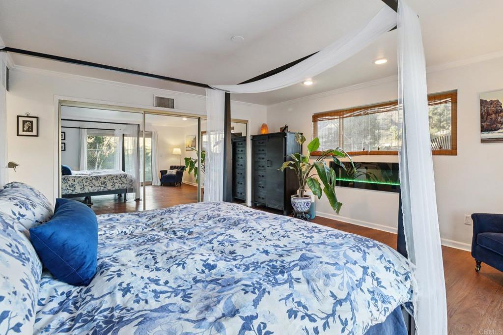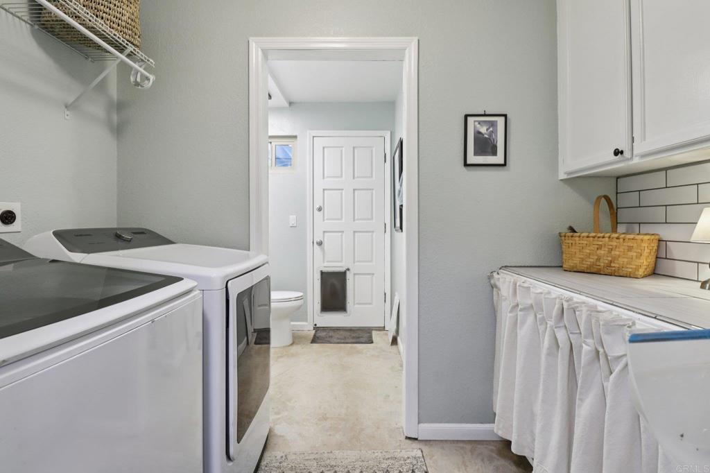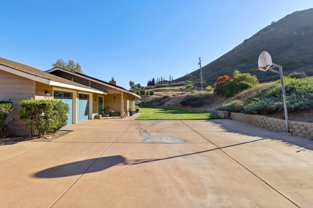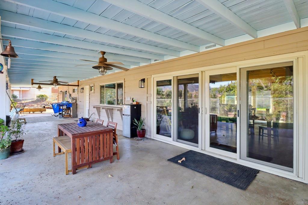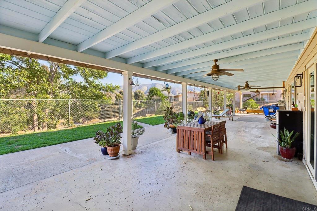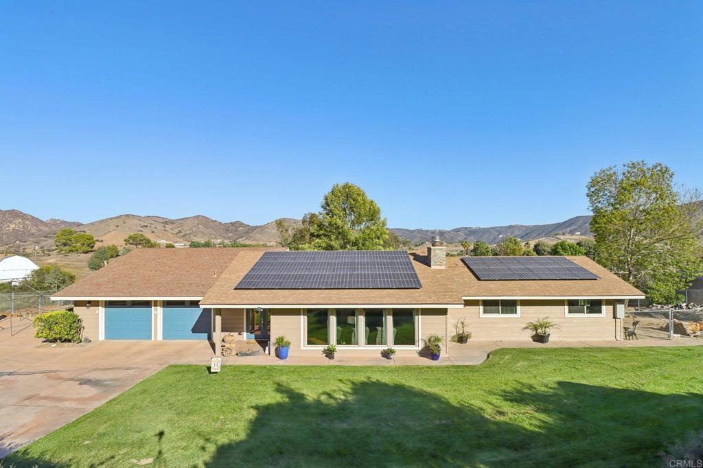 Beautifully updated ranch-style home nestled in the hills with stunning sunrise views. Enjoy off-grid style living city close with low utility costs with paid solar, an automatic generator, septic, and a private well new within the last 5 years, complete with a whole-house water softener and reverse osmosis system. Inside feels bright and airy with vaulted tongue-and-groove ceilings, large newer windows, and an open split floor plan that provides privacy and comfort. The remodeled kitchen features Bosch stainless steel appliances, tons of cabinetry, and a peninsula with seating. The inviting living room offers a cozy wood-burning fireplace, wet bar, and picture windows framing the scenic outdoor views. The primary suite includes a built-in electric fireplace, two large closets, and sliders with views. Beautifully remodeled hall bath with double sinks, plus an indoor laundry room featuring a barn door and an additional full bath. Step outside to your private oasis with an extra-large covered patio with ceiling fans and a spacious concrete area ideal for entertaining or relaxing while watching the sunrise. The backyard boasts gorgeous real green grass, a fully fenced yard, and fruit trees including orange, grapefruit, Meyer lemon, and pomegranate. Freshly painted inside and out with premium Sherwin Williams paint and upgraded luxury vinyl plank flooring throughout. Additional highlights include a newer HVAC system, whole attic fan, instant hot water heater, sliders in every bedroom, electric car wiring, and a hot tub-ready panel. Big concrete driveway with plenty of parking, plus dirt road access leading to additional pad areas - one with concrete and water, offering extra usable space. Property is located on a private road with a shared maintenance agreement that ensures the road is well maintained. Prime location offers peace, privacy, and natural beauty while being just minutes from Sycuan Resort, shopping, dining, and town amenities. Don’t miss this one!