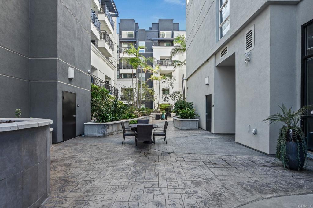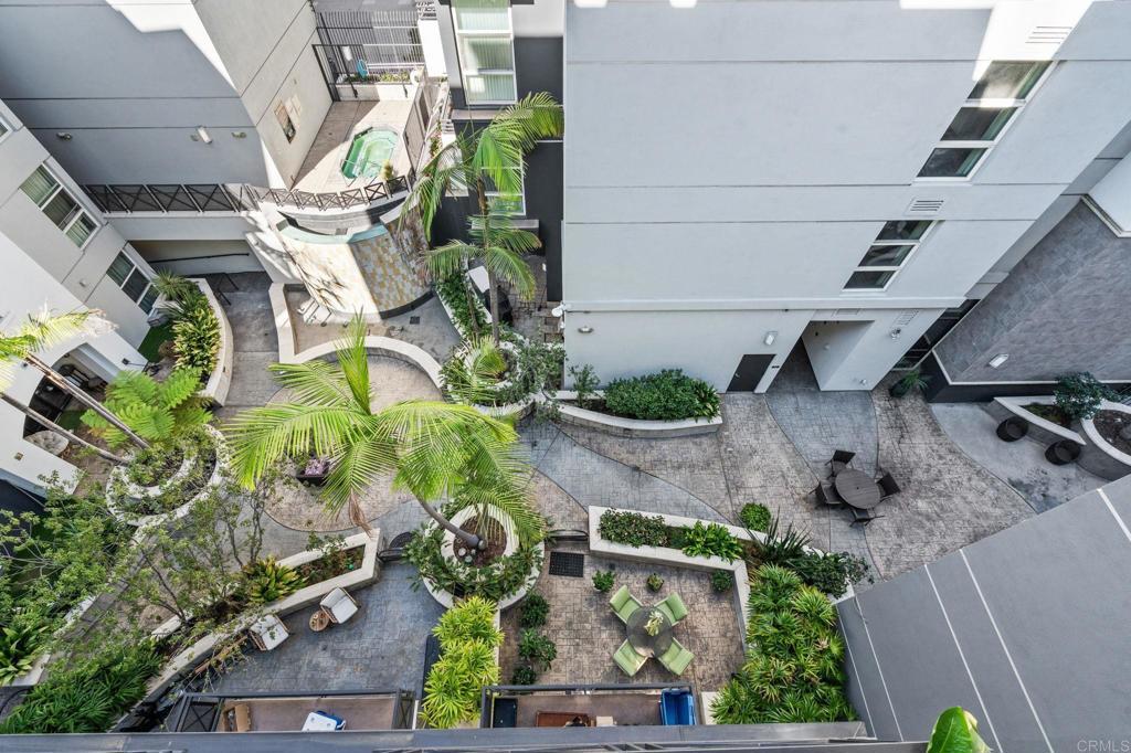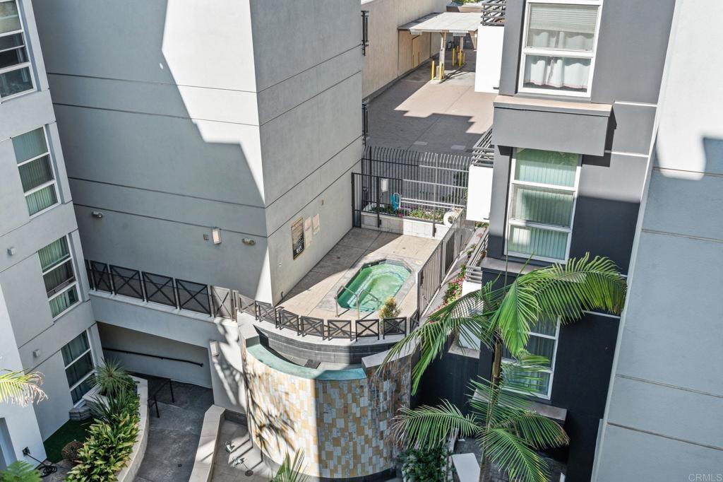 Attractive and very private 2-story unit atop Park Blvd West! Rarely on the market, this floor plan on the top-floor has city views to the north, and 2 patios. The layout features the bedroom & bath on the entry level, and a loft accessed from a spiral staircase. The loft acts as a study/den, or, guest sleeping area, and includes a private terrace. The recently painted building is conveniently located near Petco Park and includes a courtyard seating area, community jacuzzi/spa, and a gated parking garage w/ 1 assigned space. Enjoy the hustle and energy of downtown living, including quick access to San Diego Bay, restaurants in the Gaslamp Quarter, Padres games at Petco Park, the acoustic magic of the Rady Shell; plus, you are adjacent to the architect Rob Quigley-designed Central Library, as well as the San Diego Trolley.