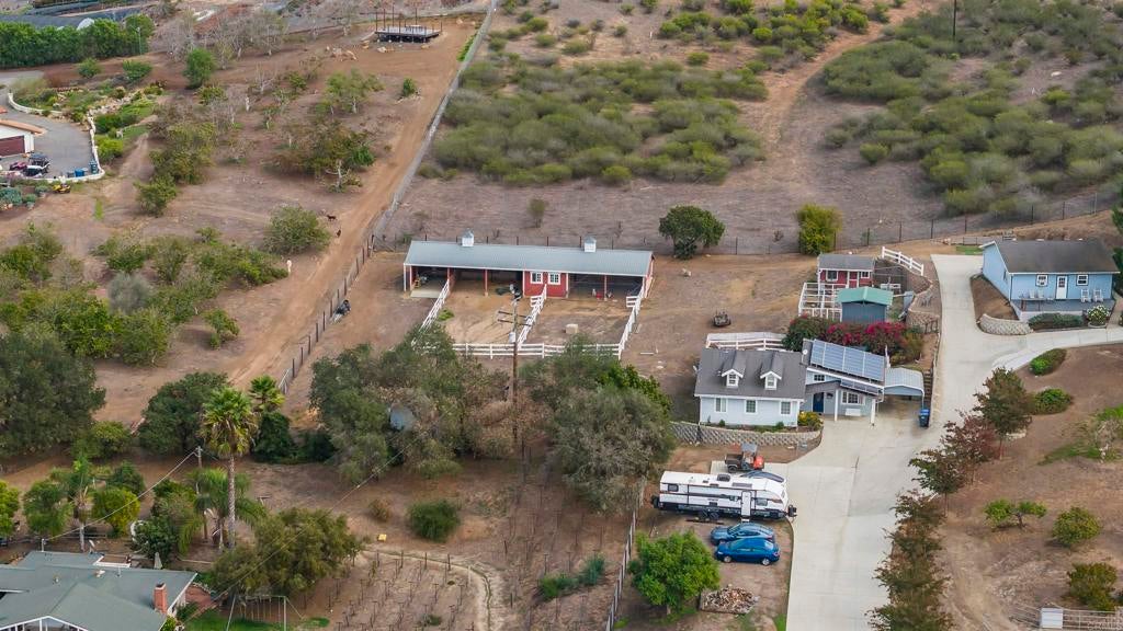 Seller will entertain offers between $2,141,000 - $2,250,000. Incredible versatility and stunning panoramic views await at this equestrian estate, which features THREE RESIDENCES on a highly developed 2.35 acre lot. The 3,465 sq ft main house offers soaring ceilings, beautiful finishes, a whole house fan, central vac, laundry chute, sub-level with more storage, 4 bedrooms AND an attached 1 bed/1bath apartment with a separate entrance. The 1,100 sq ft detached guest house offers 3 beds (1 is an optional bedroom/den), 2 full baths and a private backyard. There is new HVAC equipment for all 3 residences and owned solar energy systems on both the main house and detached guest house. Another detached building houses a 3-car garage and bonus room (currently used as an office) with a half bath. Enjoy a NEW high-end pool with a safety enclosure, large patio, waterslide, grotto, LED lights, and AOP Ozone system for excellent water quality. Rinse off after a swim in the enclosed outdoor bathroom with a shower. A charming red barn offers 2 oversized stalls with runs, a hay room and a tack room. An outdoor riding arena completes this amazing horse property. A large chicken coop with run is set up for collecting fresh eggs each morning. Multiple fruit and avocado trees and large planter boxes complete the home garden. This fully-fenced property with a gated driveway is located on a well-maintained private road in Bonsall, only 30 minutes from the beach in Oceanside. Experience coastal breezes and even a view of the ocean on a clear day from this hilltop property!