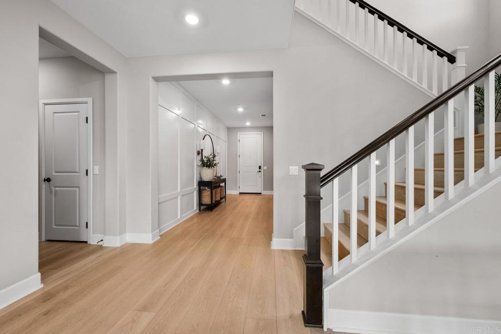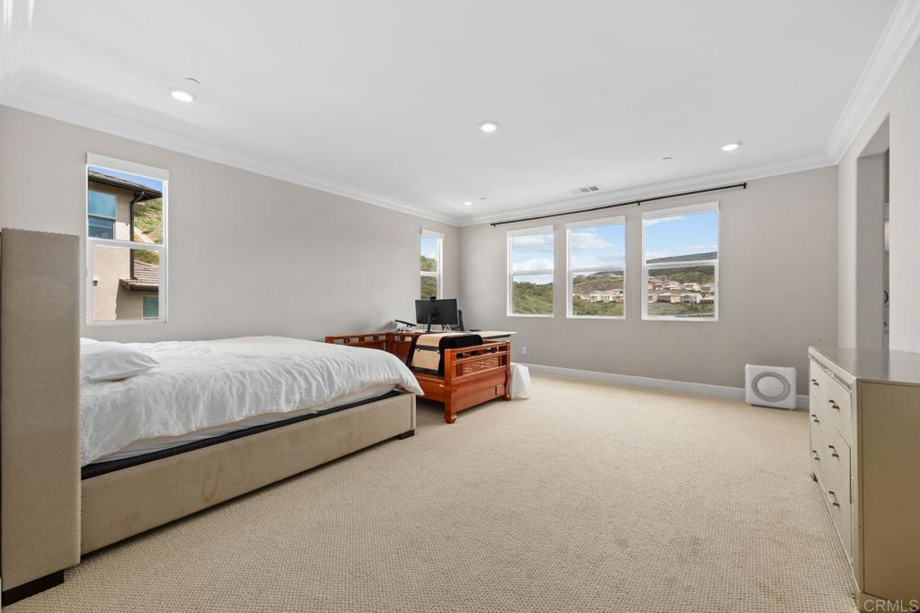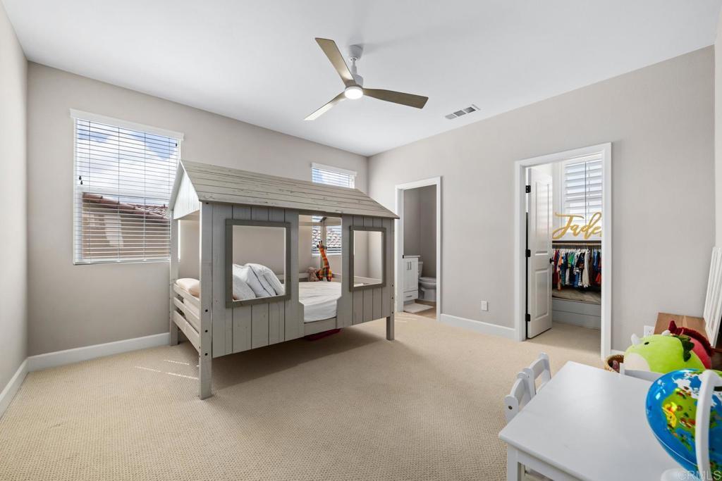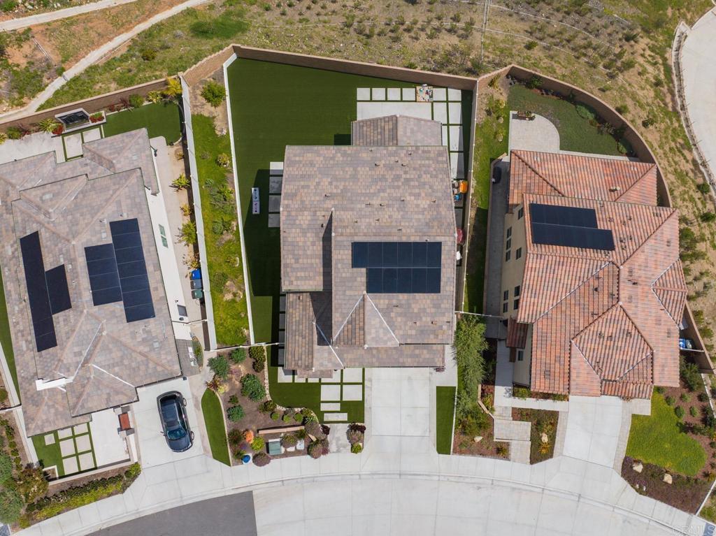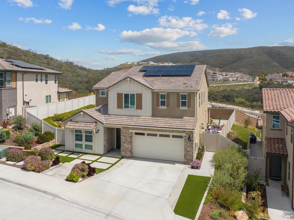 This stunning 4-bedroom, 4.5 bath home, located in the highly desirable Skylark community, offers modern living at its finest. Featuring a PAID OFF solar panel system, this home is energy-efficient and eco-friendly. With over $90,000 invested in premium landscaping and water filtration systems throughout, it is truly move-in ready. Spanning 3,175 square feet, the open-concept layout seamlessly connects the spacious living room, dining area, and gourmet kitchen, which boasts premium countertops, a sleek quartz backsplash, stainless steel appliances, and abundant cabinet space—ideal for cooking and entertaining. The first floor also includes a private room, perfect for family, guests, or even as an independent rental unit. Upstairs, the luxurious master suite offers a walk-in closet and a spa-like bathroom with dual vanities and a soaking tub, providing a peaceful retreat. Two additional bedrooms share beautifully appointed bathrooms, while the versatile loft space is perfect for a home office, playroom, or whatever your lifestyle needs. Step outside to enjoy the community's playground dog park, and walking trails, all just a short stroll away. Located just 10 minutes from shopping at San Marcos Grand Plaza and Costco, and only a 5-minute drive to Palomar College, convenience is key. Golf enthusiasts will appreciate the proximity to nearby courses like Twin Oaks and Shadowridge. This home offers the perfect blend of comfort, style, and location—don’t miss the opportunity to make it yours!