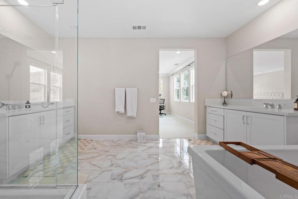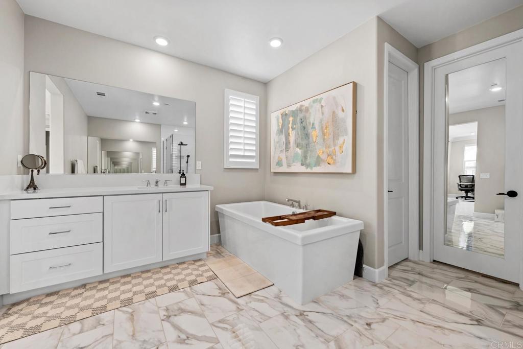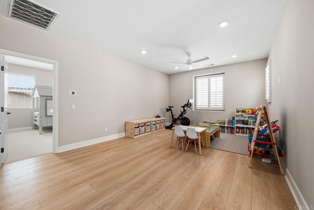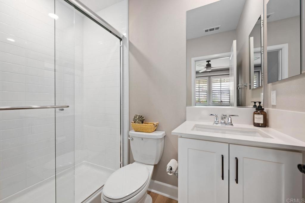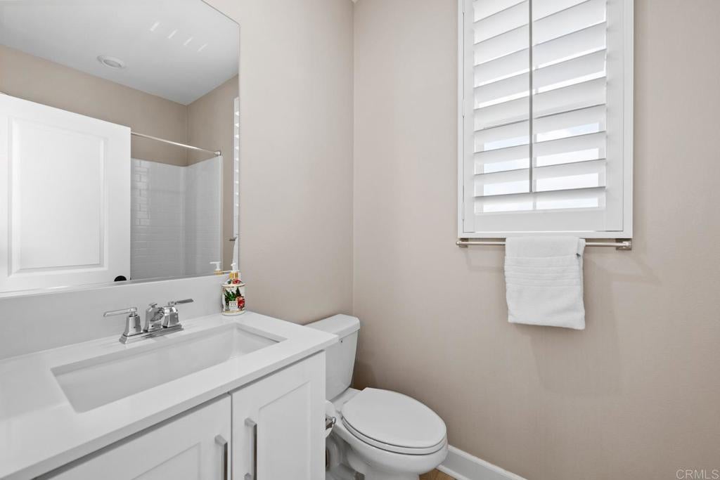 This stunning 4-bedroom, 4.5 bath home, located in the highly desirable Skylark community, offers modern living at its finest. Featuring a PAID OFF solar panel system, this home is energy-efficient and eco-friendly. With over $90,000 invested in premium landscaping and water filtration systems throughout, it is truly move-in ready. Spanning 3,175 square feet, the open-concept layout seamlessly connects the spacious living room, dining area, and gourmet kitchen, which boasts premium countertops, a sleek quartz backsplash, stainless steel appliances, and abundant cabinet space—ideal for cooking and entertaining. The first floor also includes a private room, perfect for family, guests, or even as an independent rental unit. Upstairs, the luxurious master suite offers a walk-in closet and a spa-like bathroom with dual vanities and a soaking tub, providing a peaceful retreat. Two additional bedrooms share beautifully appointed bathrooms, while the versatile loft space is perfect for a home office, playroom, or whatever your lifestyle needs. Step outside to enjoy the community's playground dog park, and walking trails, all just a short stroll away. Located just 10 minutes from shopping at San Marcos Grand Plaza and Costco, and only a 5-minute drive to Palomar College, convenience is key. Golf enthusiasts will appreciate the proximity to nearby courses like Twin Oaks and Shadowridge. This home offers the perfect blend of comfort, style, and location—don’t miss the opportunity to make it yours!