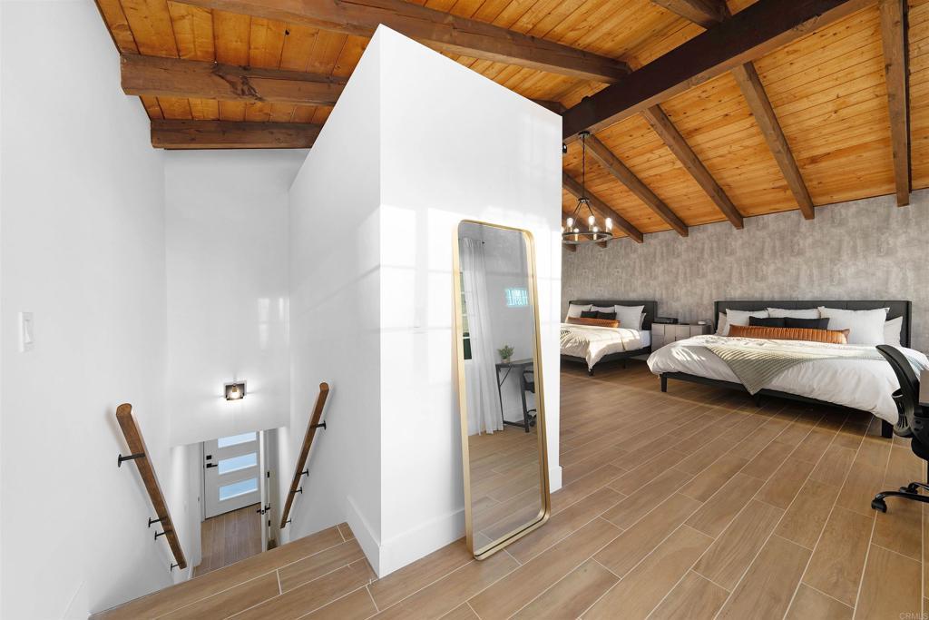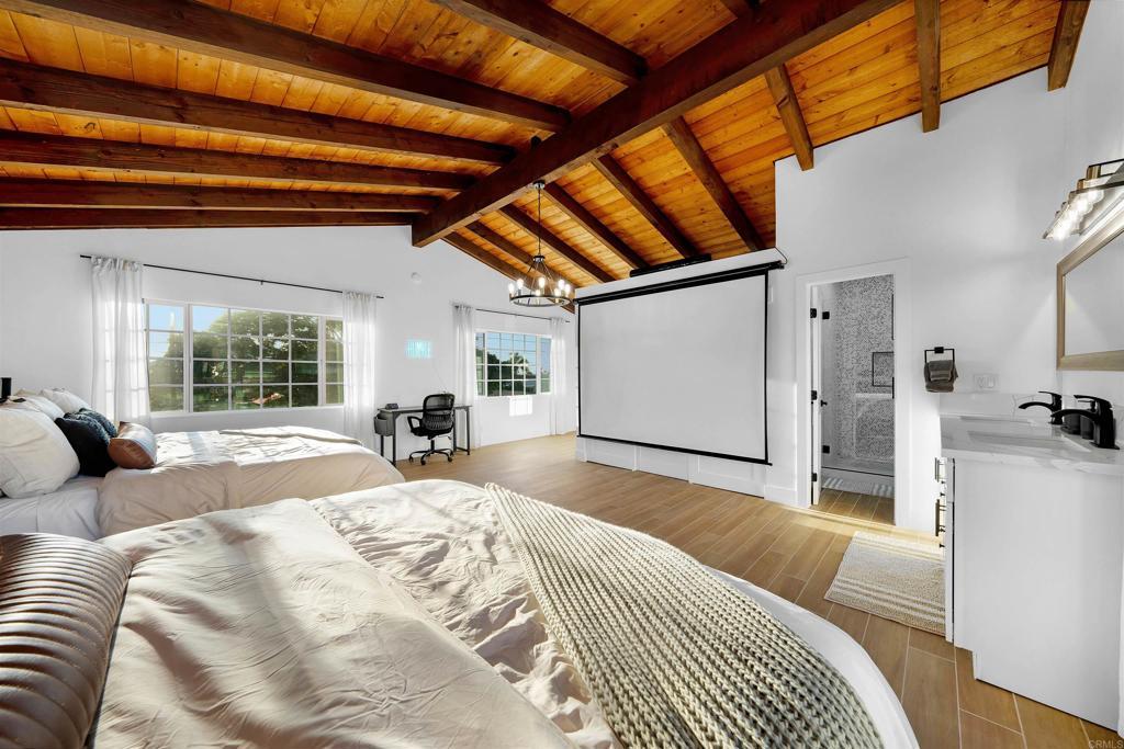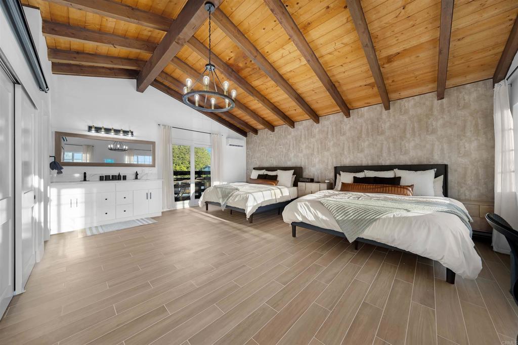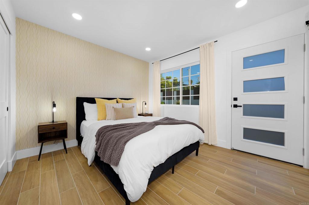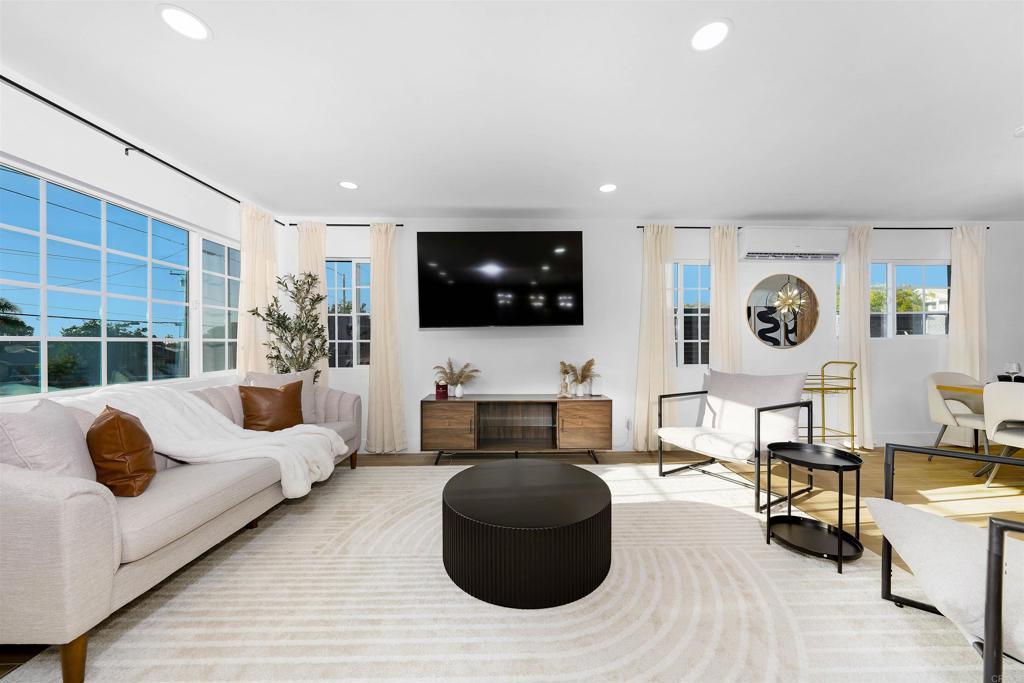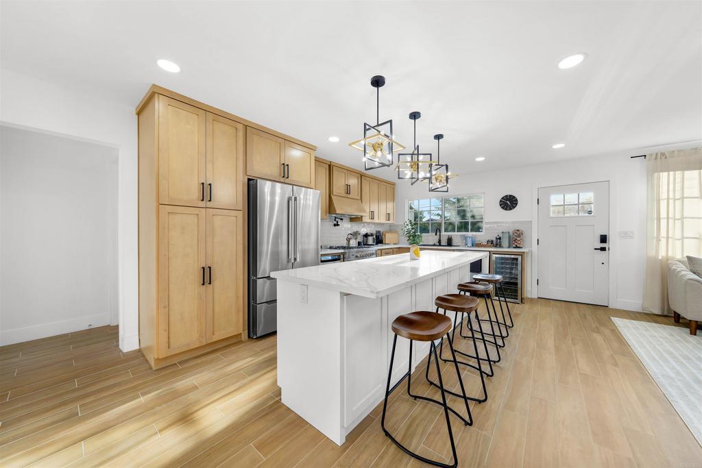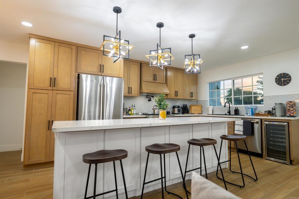 Turnkey + fully renovated 3 bed, 3 bath modern home in the heart of Chula Vista! This beautifully redesigned property features a spacious open-concept floor plan, designer finishes throughout, natural lighting, and a resort-style backyard perfect for indoor–outdoor living. Step inside to a bright living space with large dual-pane windows, recessed lighting, custom accent walls, and luxury plank tile flooring. The chef’s kitchen offers new shaker cabinetry, a massive quartz island, stainless steel appliances, pot filler, wine fridge, and upgraded fixtures—ideal for entertaining. The main level includes two bedrooms and two full bathrooms, perfect for multigenerational living, guests, or a home office. The sleek bathrooms feature modern vanities, matte-black hardware, rainfall showers, and custom tile work. The private upstairs primary suite retreat includes a spacious bedroom, upgraded ensuite bath, and its own outdoor patio deck. Your backyard is an entertainer’s dream—complete with a sparkling pool, outdoor kitchen, built-in fire pit, built-in outdoor bbq/bar/fridge, low-maintenance turf, and privacy fencing. Additional upgrades include: new mini-split A/C units, updated electrical + plumbing systems, dual-pane windows, modern light fixtures, solar, and a two-car garage (opportunity for ADU garage conversion). Located near shopping, dining, schools, parks, freeway access, and the exciting Chula Vista Bayfront Redevelopment. Move-in ready, fully upgraded, and beautifully styled—this is Chula Vista living at its finest.